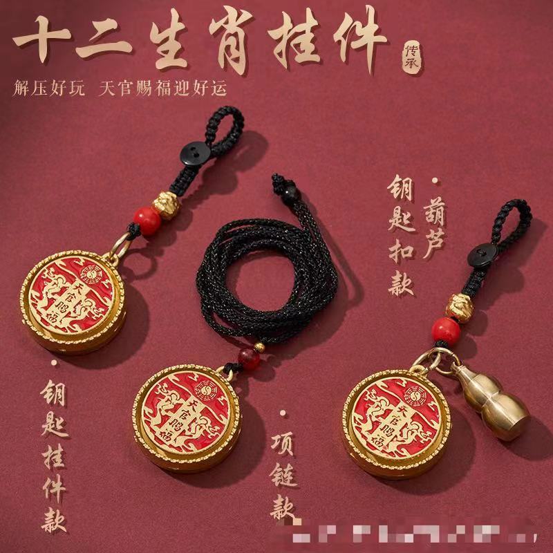 새로운 조디악 하늘 공무원 축복 및 축복 캐릭터 턴 펜던트 선물 공예 키 체인 금속 펜던트 쥬얼리