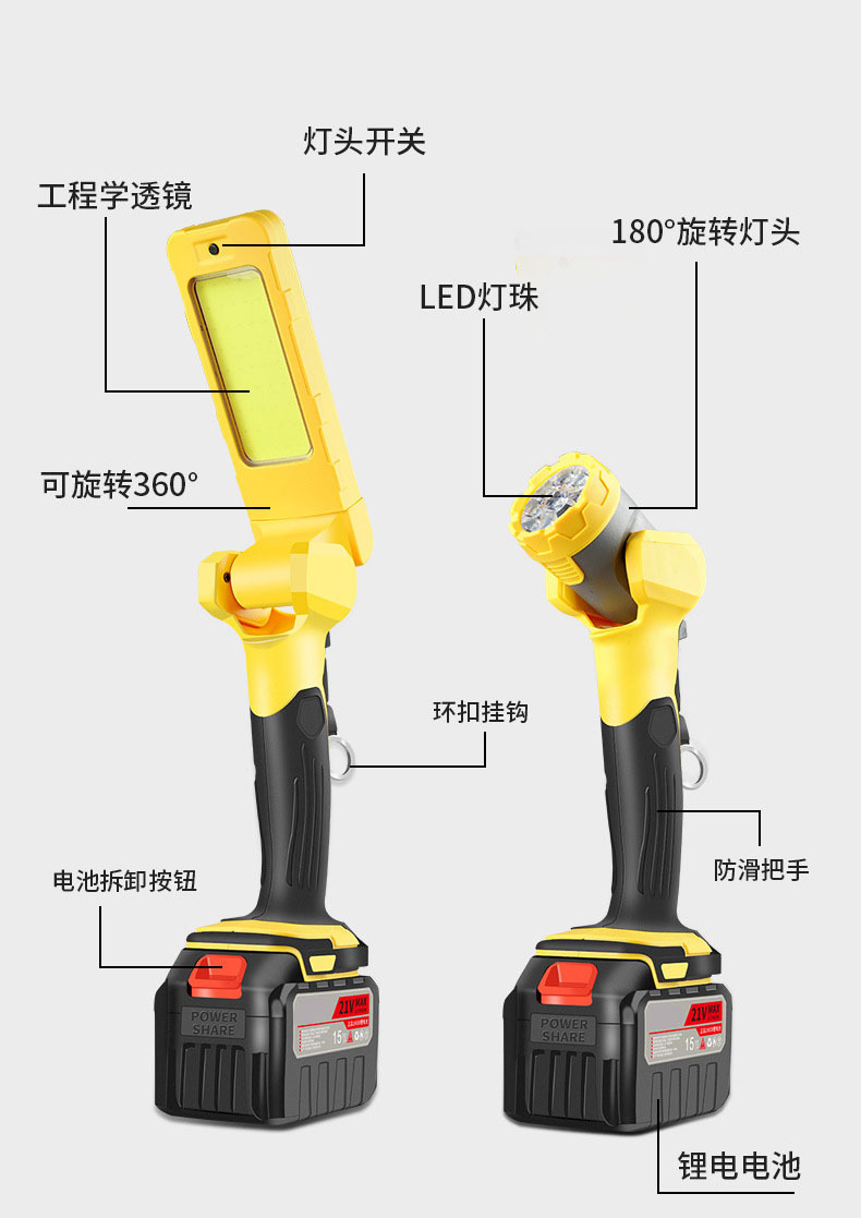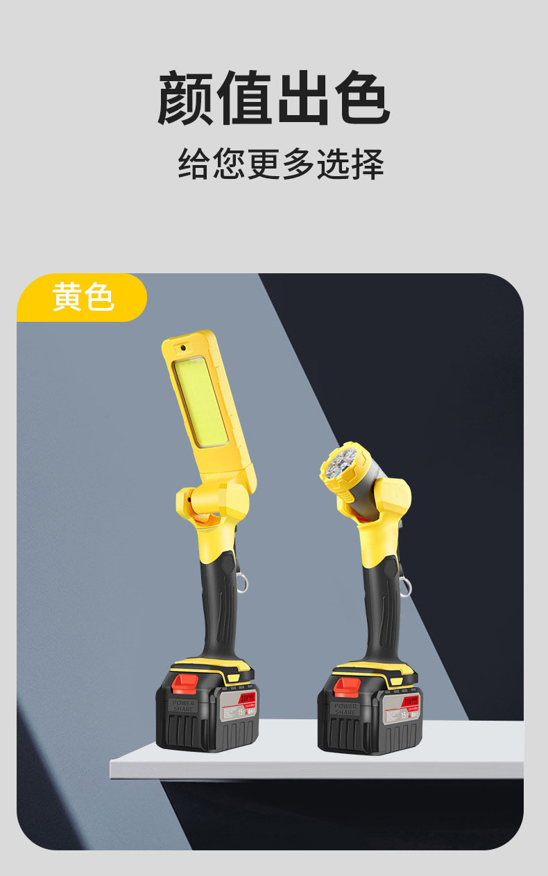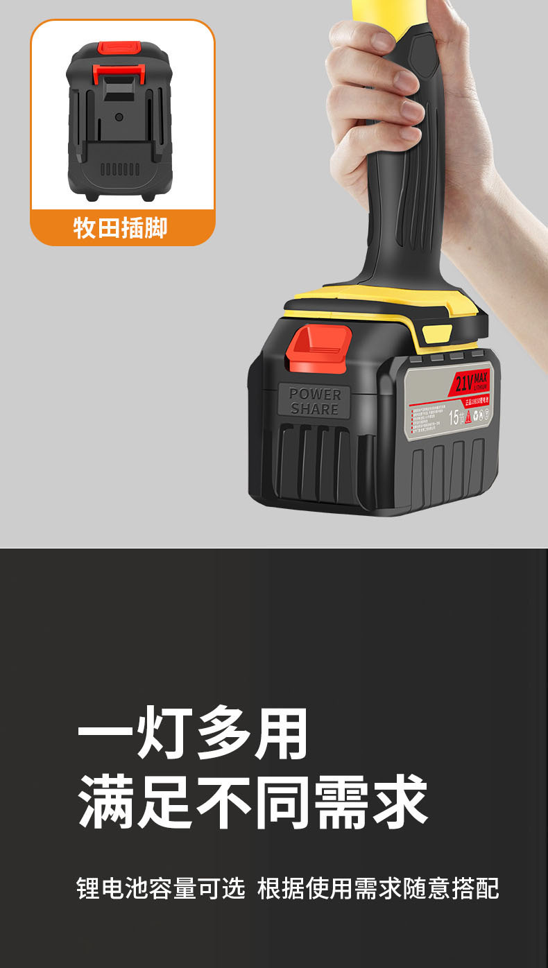 • W98 리튬 배터리 실외 손전등 조명 [노란색 10셀 배터리 2개 1충전 마키타 모델]