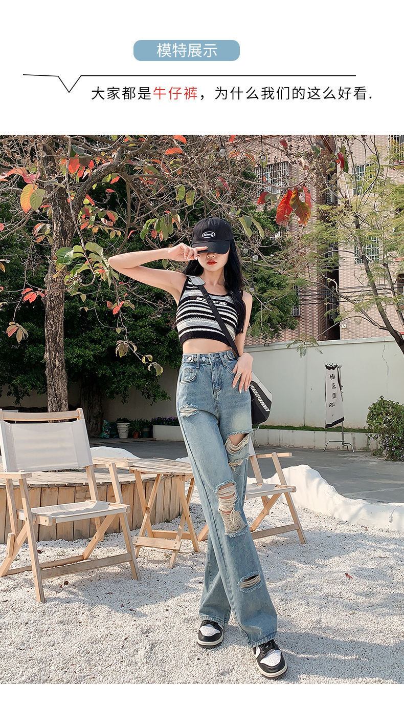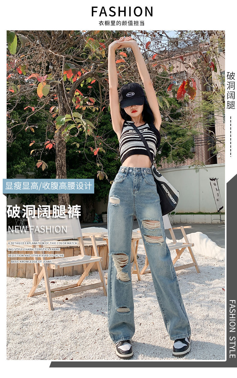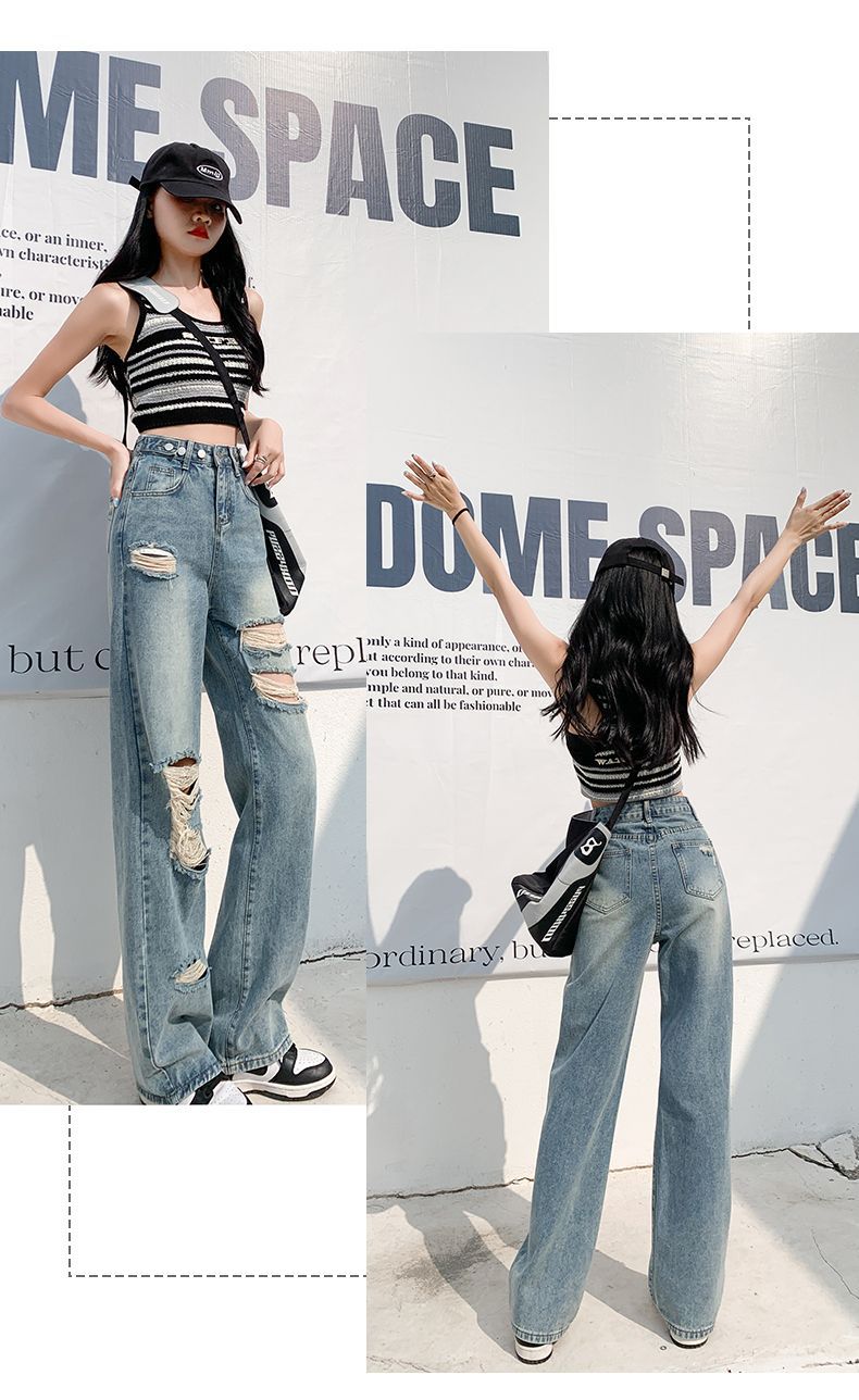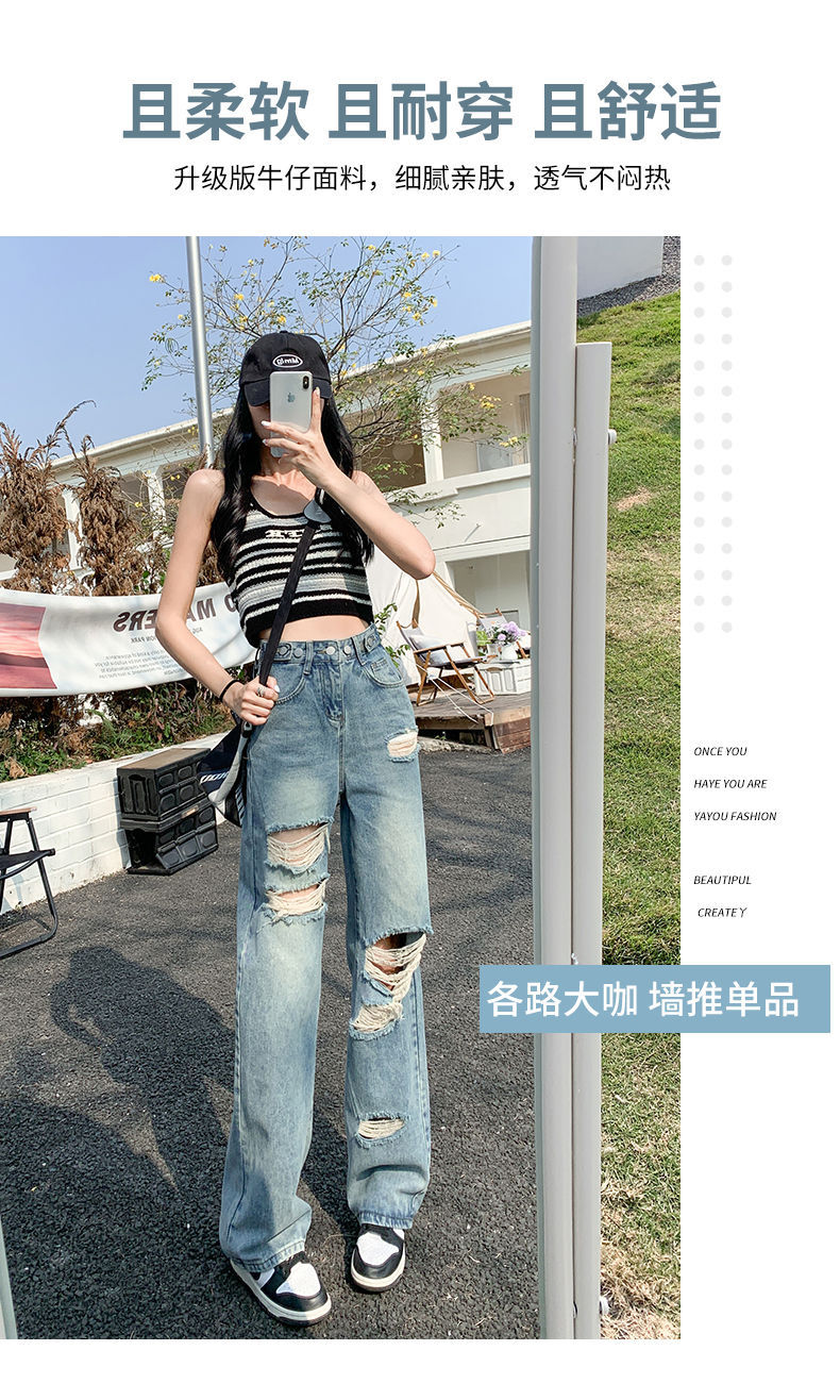 아메리칸 스타일 레트로 리핑 청바지 여성의 2025 년 봄과 가을 새로운 디자인 감각 느슨한 슬리밍 바지 넓은 다리스토어 가기