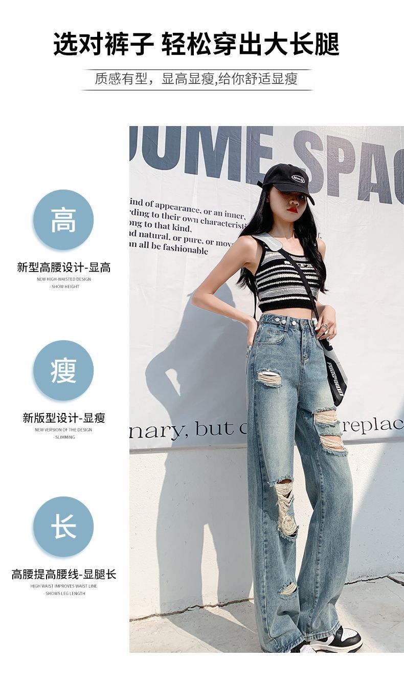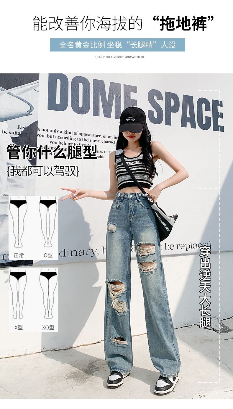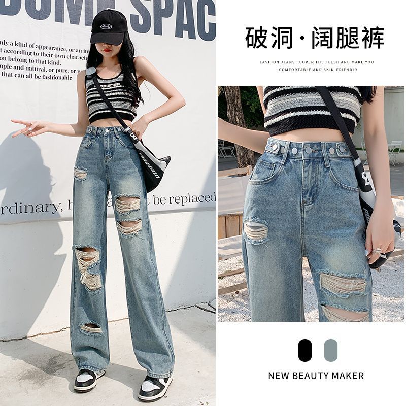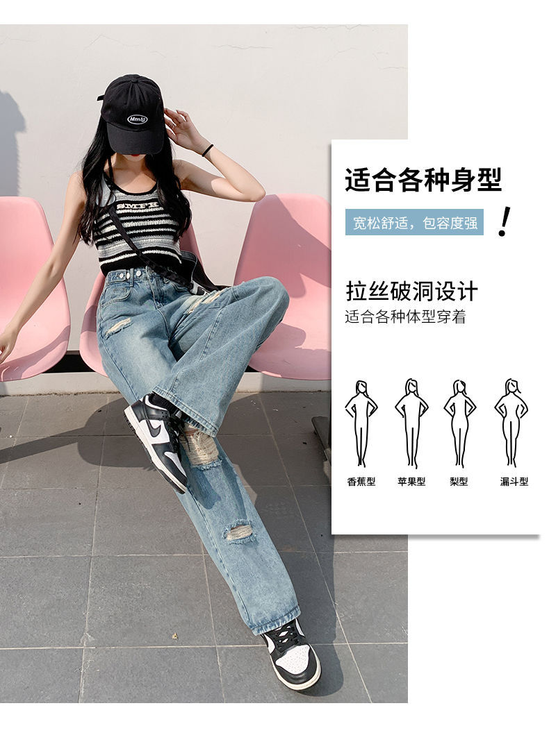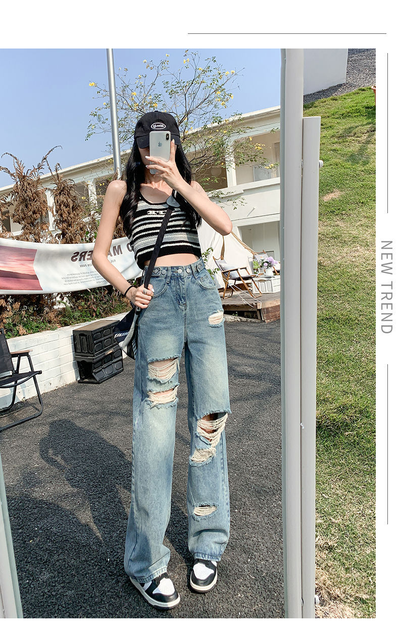 아메리칸 스타일 레트로 리핑 청바지 여성의 2025 년 봄과 가을 새로운 디자인 감각 느슨한 슬리밍 바지 넓은 다리스토어 가기