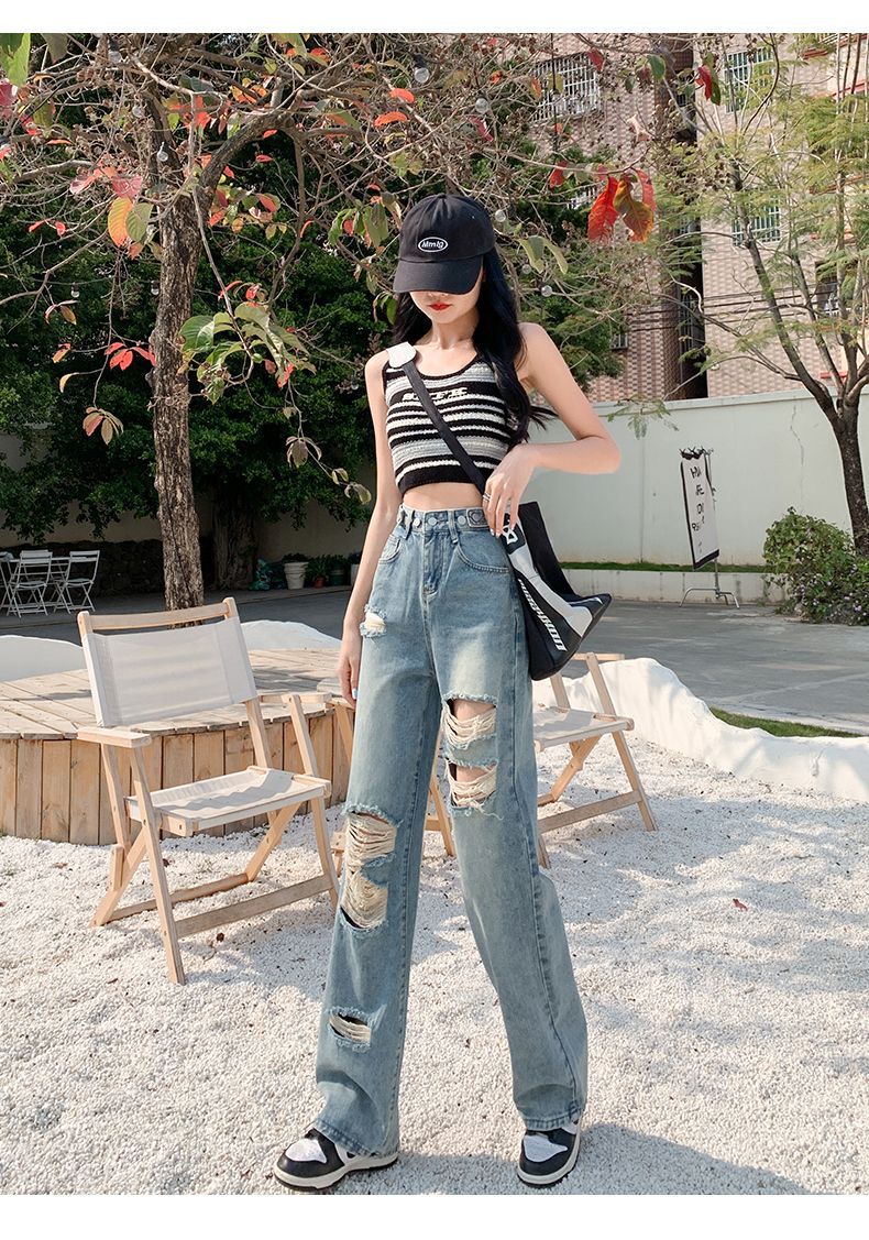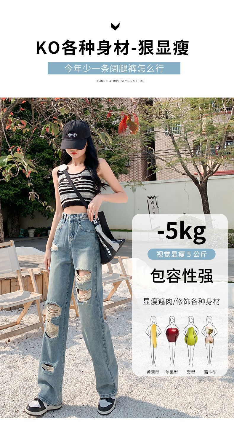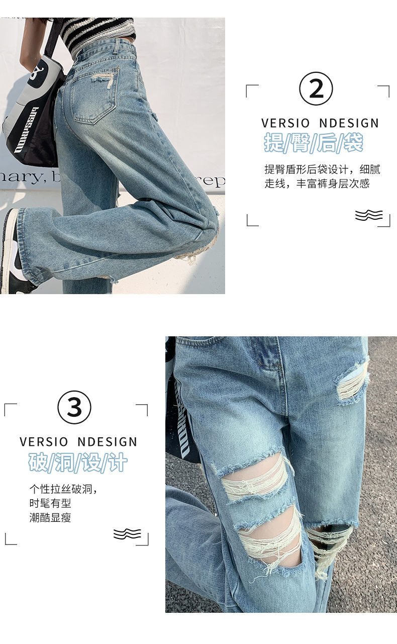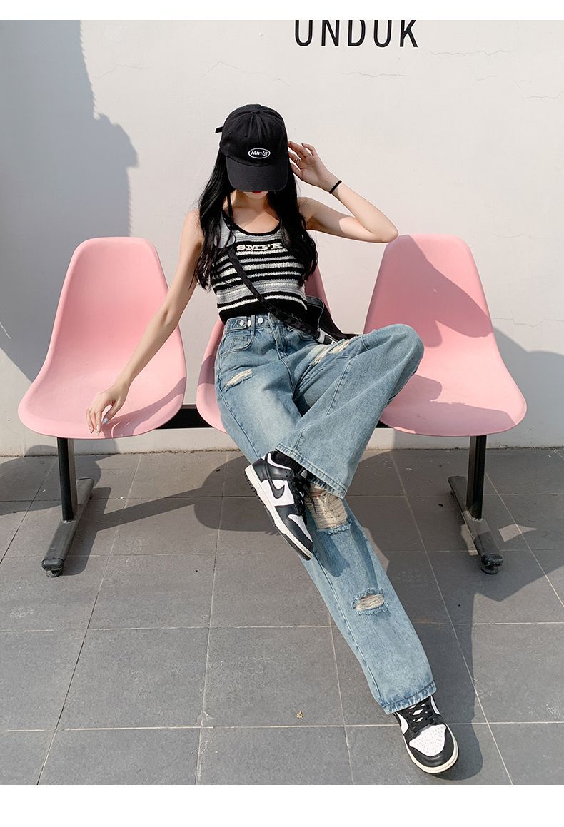 아메리칸 스타일 레트로 리핑 청바지 여성의 2025 년 봄과 가을 새로운 디자인 감각 느슨한 슬리밍 바지 넓은 다리스토어 가기