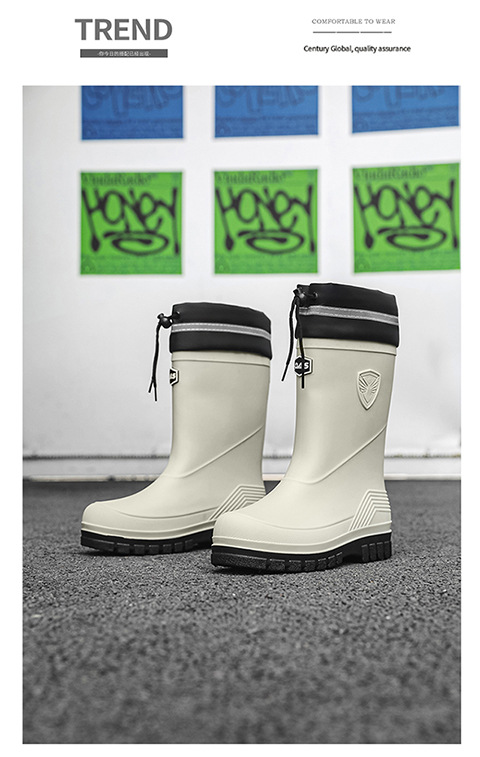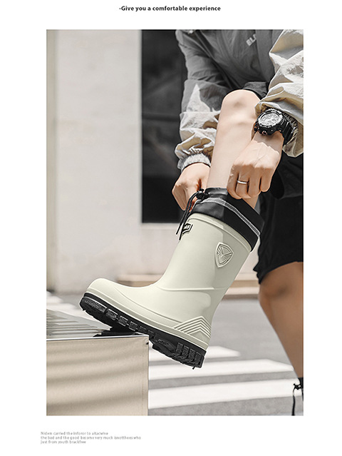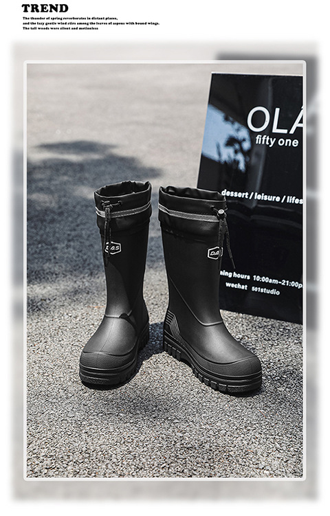 남성 번들 기모 장화 유행 중형 두꺼운 주방 세차 낚시 작업 신발 방수 미끄럼 방지 고무 신발 커버스토어 가기
