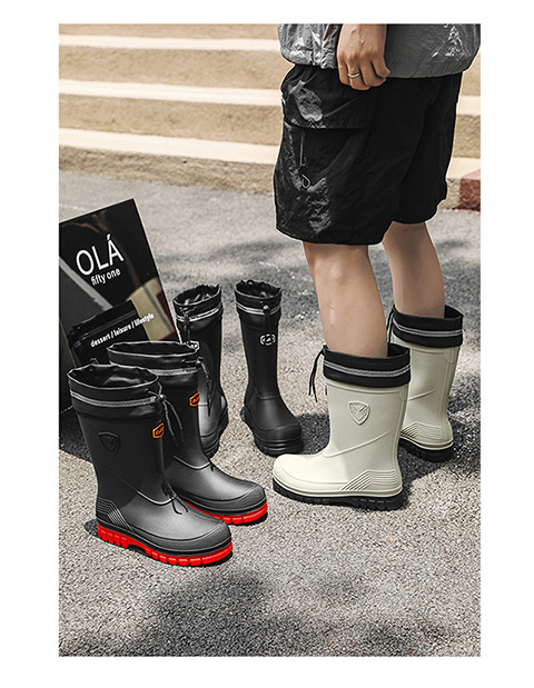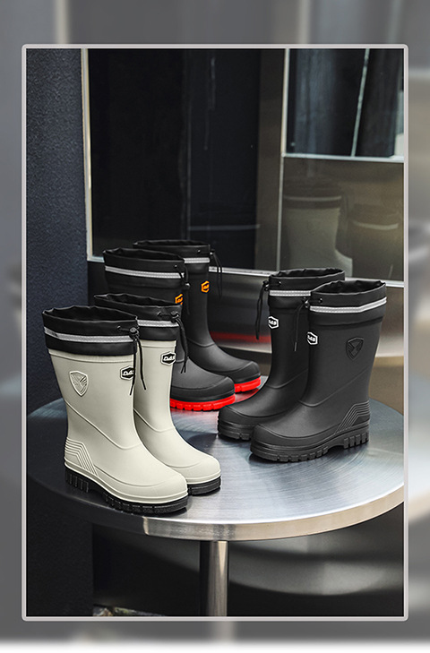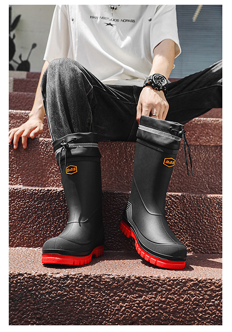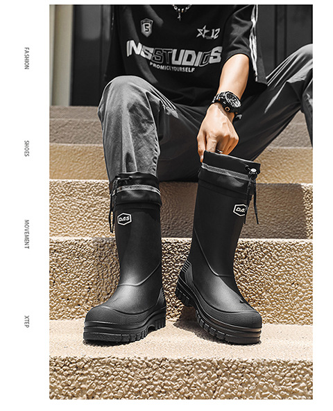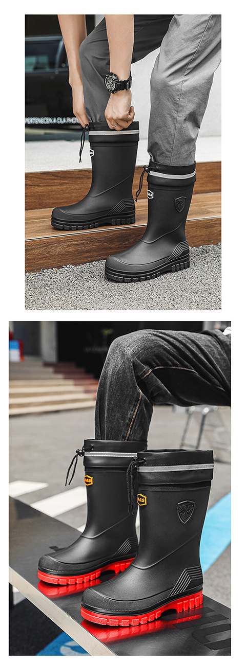 남성 번들 기모 장화 유행 중형 두꺼운 주방 세차 낚시 작업 신발 방수 미끄럼 방지 고무 신발 커버