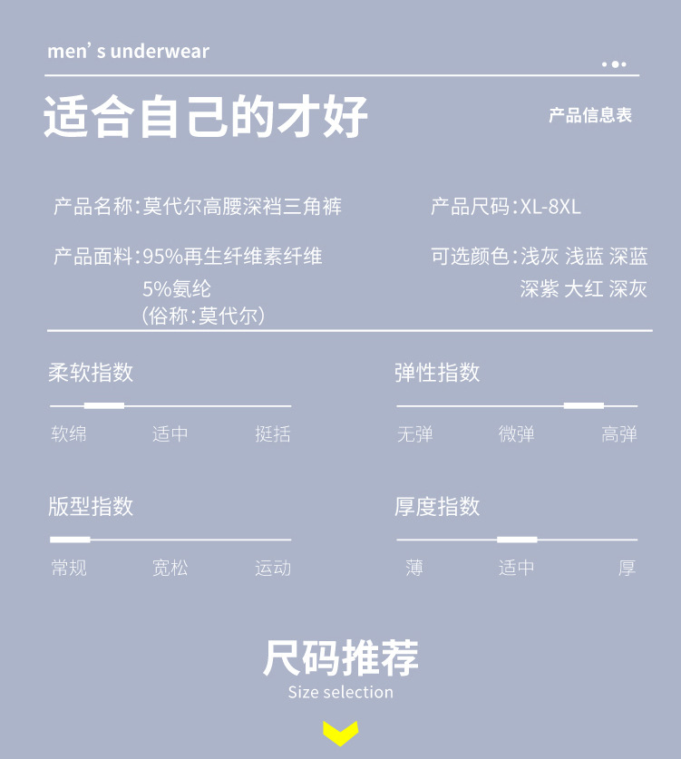 높은 허리 깊은 가랑이 남성 브리프 모달 느슨한 뚱뚱한 남자 긴 뚱뚱한 통기성 중년 아빠 바지스토어 가기