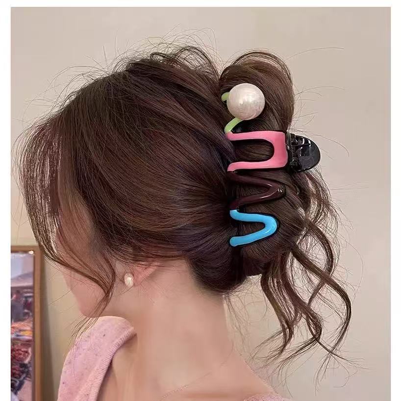 2025 년 컬러 매칭 한국 곰팡이 대형 그릇 헤어 링 대형 상어 잡아 헤어핀
