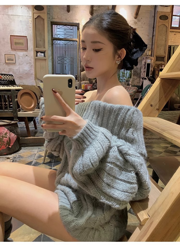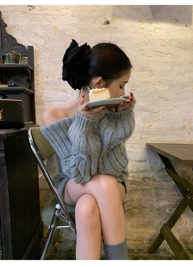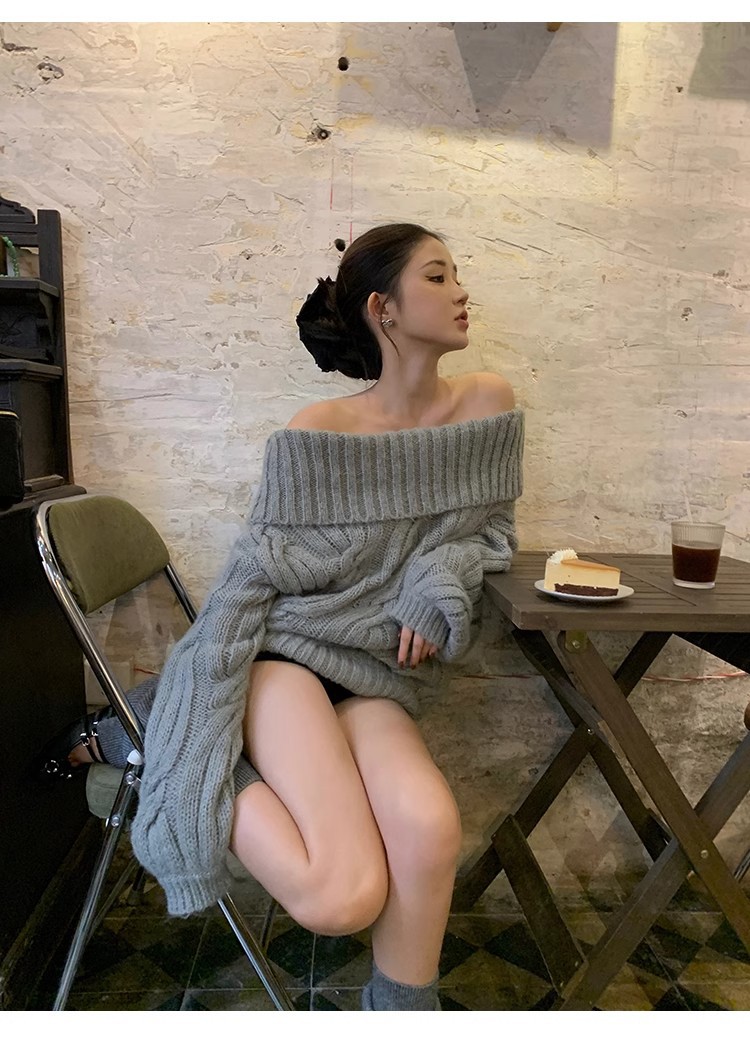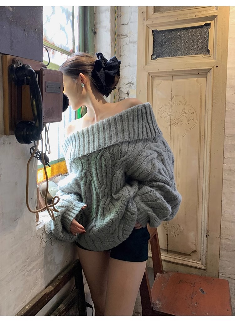 [스페셜 원사] 새해맞이 붉은오프-어깨 트위스트 스웨터 여성 가을 · 겨울 새 니트웨어 게으른 바람스토어 가기
