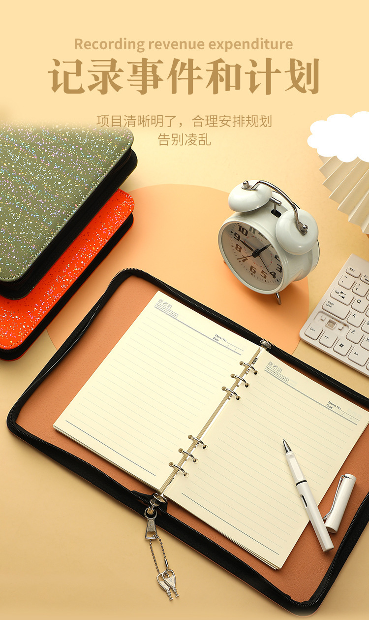 잠금 지퍼가 달린 루스리프 메모장 a5 다기능 비즈니스 관리자 클립 오피스 가방 청구서 데이터 사진 보관