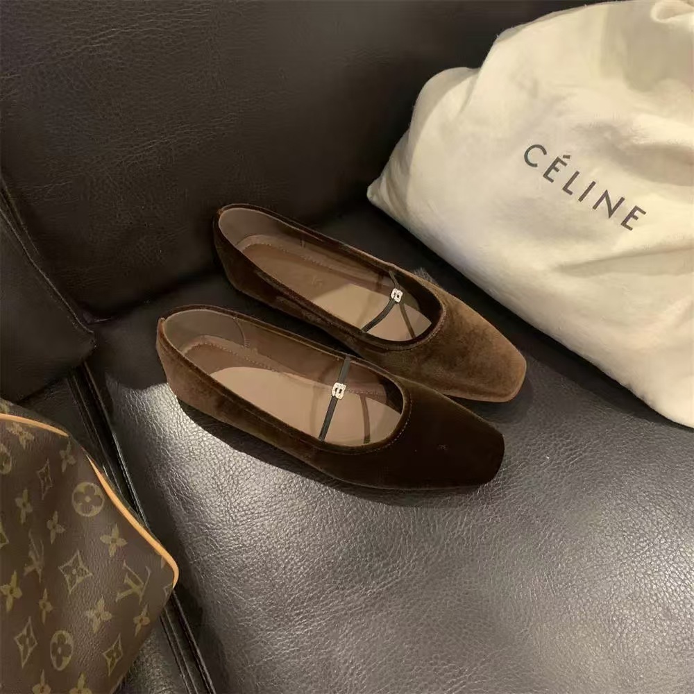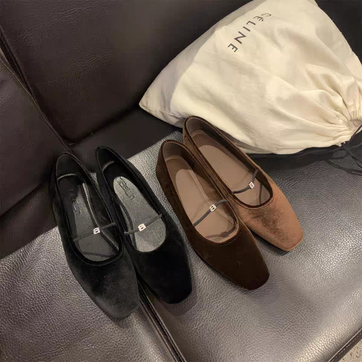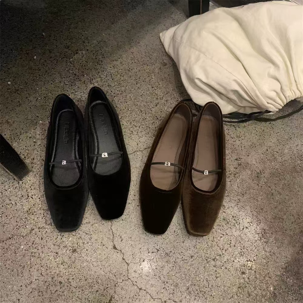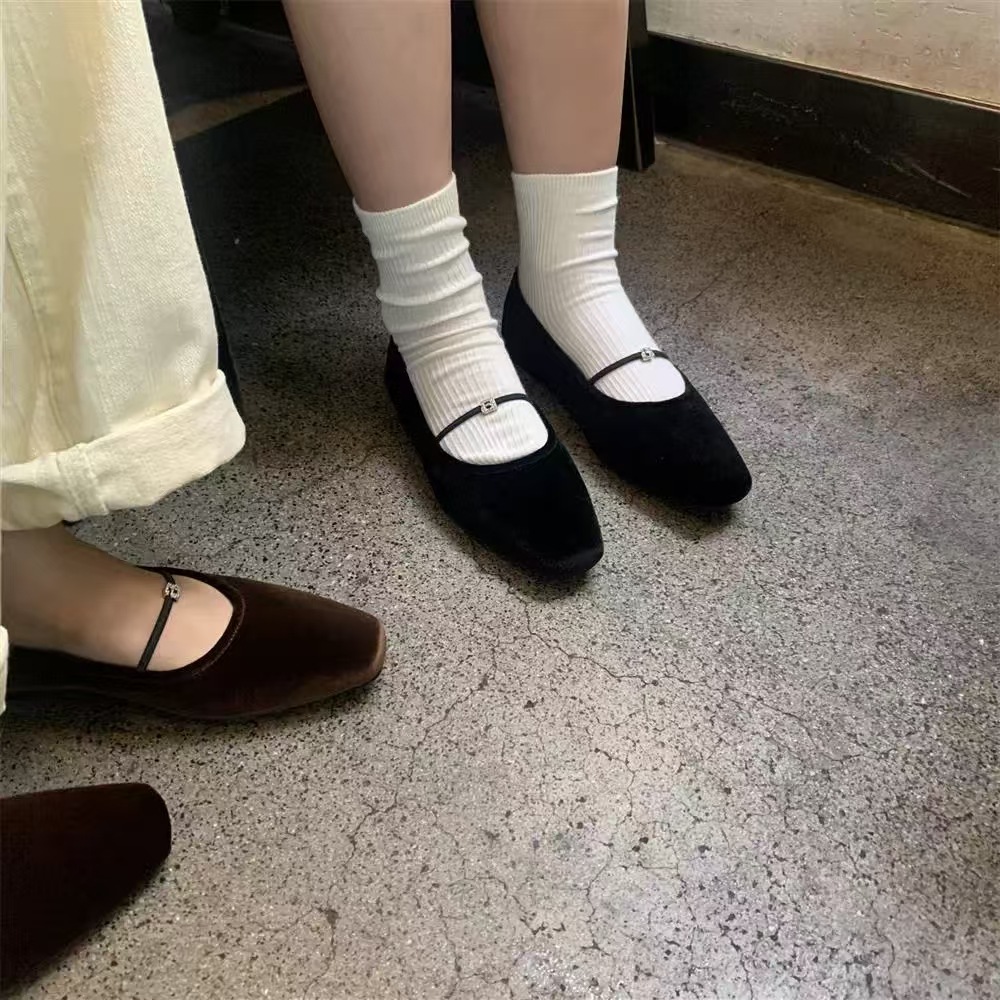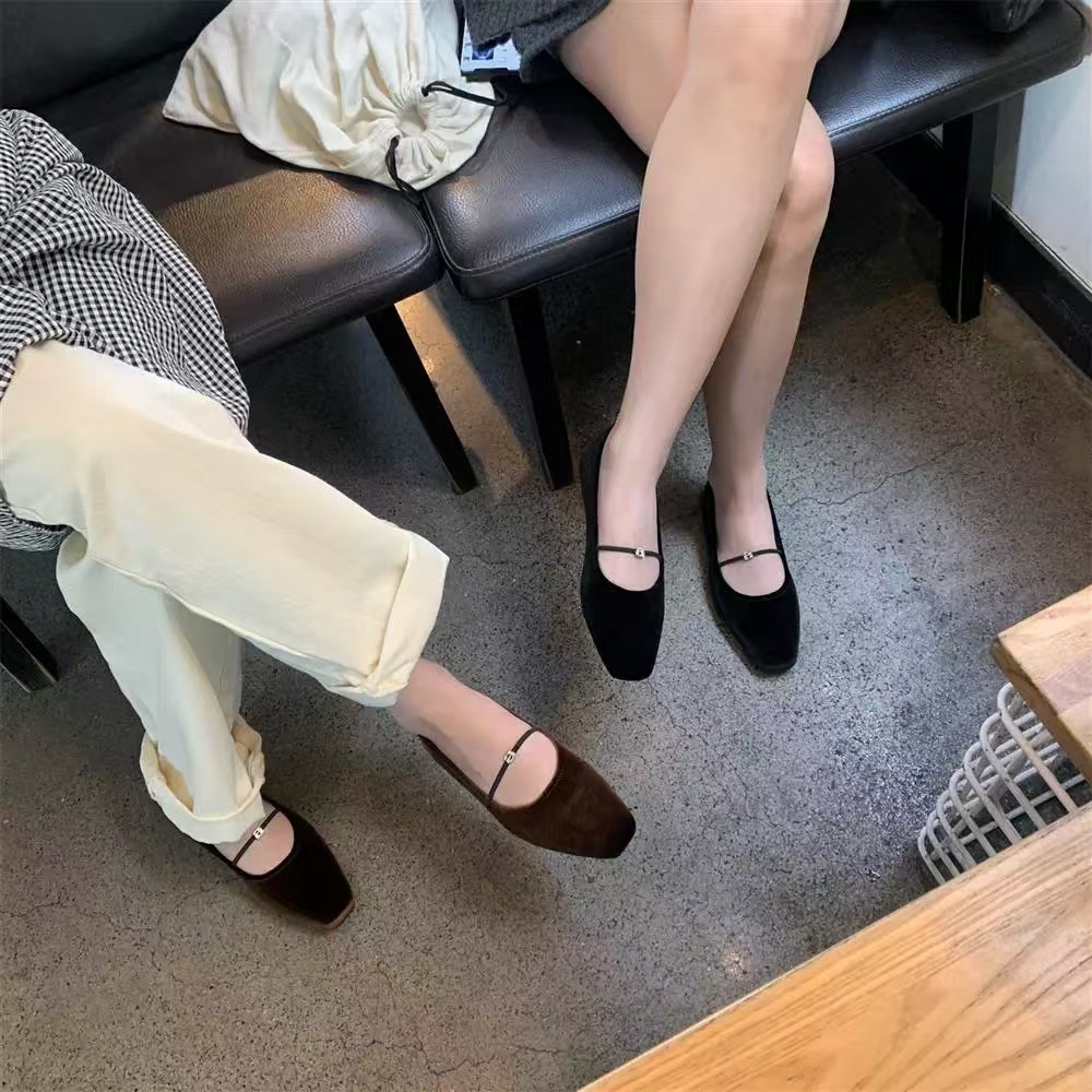 평평한 봄과 가을 스웨이드 레트로 스퀘어 토 싱글 신발 여성 신발 2025 새로운 프랑스 스타일 메리 제인 신발 레트로 레이디 슈즈스토어 가기