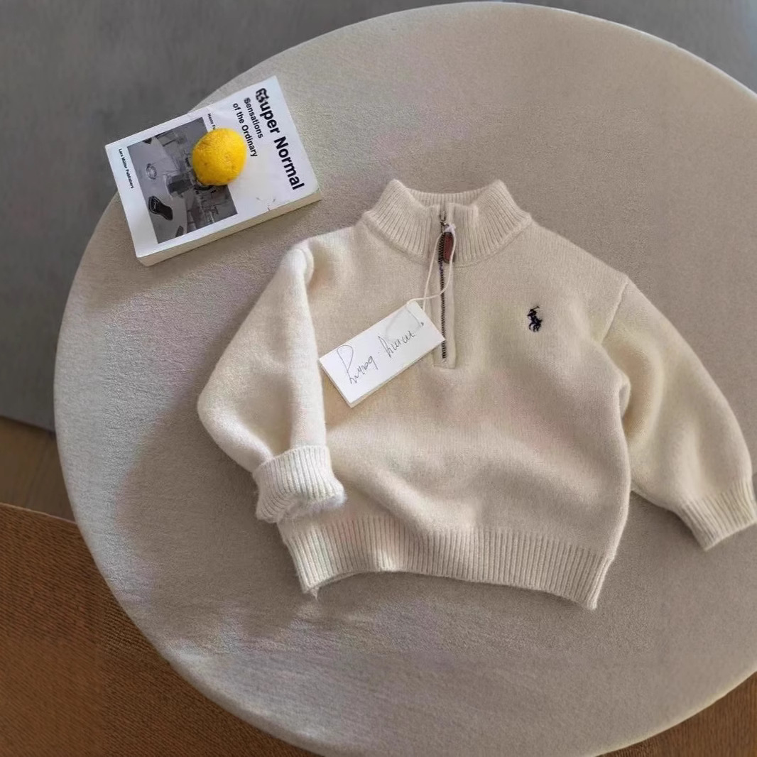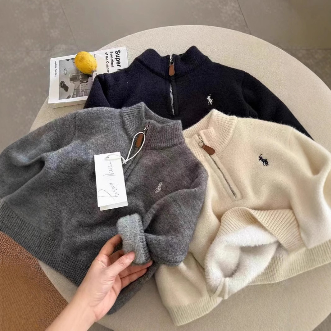 어린 이용 기모 스웨터 겨울 수제 반 터틀넥 스웨터 소년 소녀 아기 지퍼 울 기모 두꺼운 탑스토어 가기