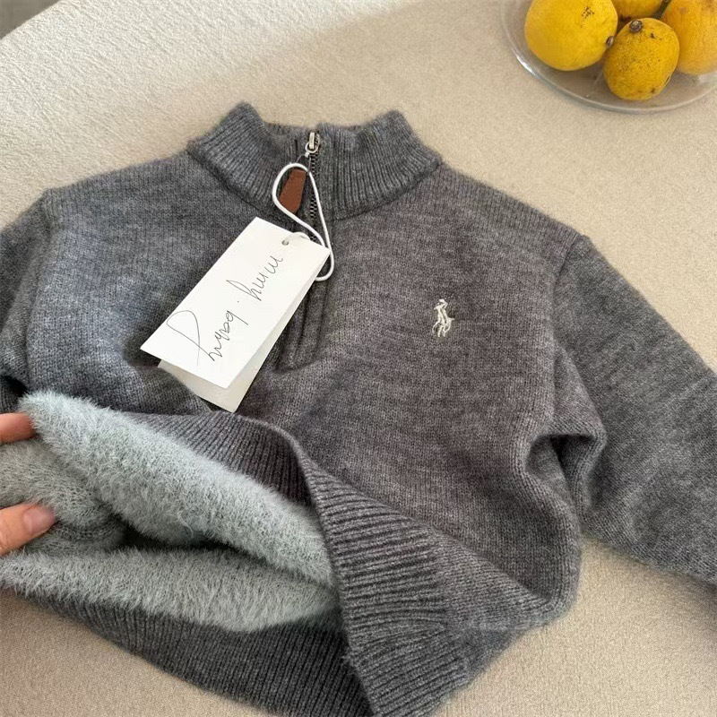 어린 이용 기모 스웨터 겨울 수제 반 터틀넥 스웨터 소년 소녀 아기 지퍼 울 기모 두꺼운 탑