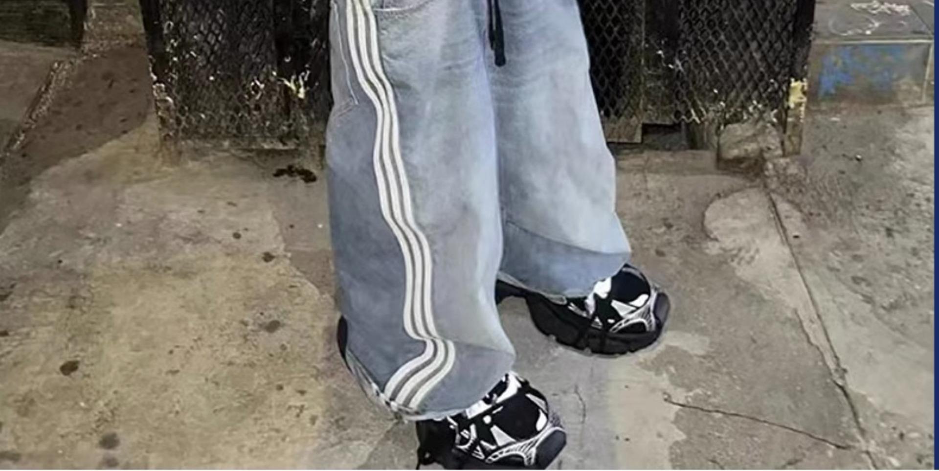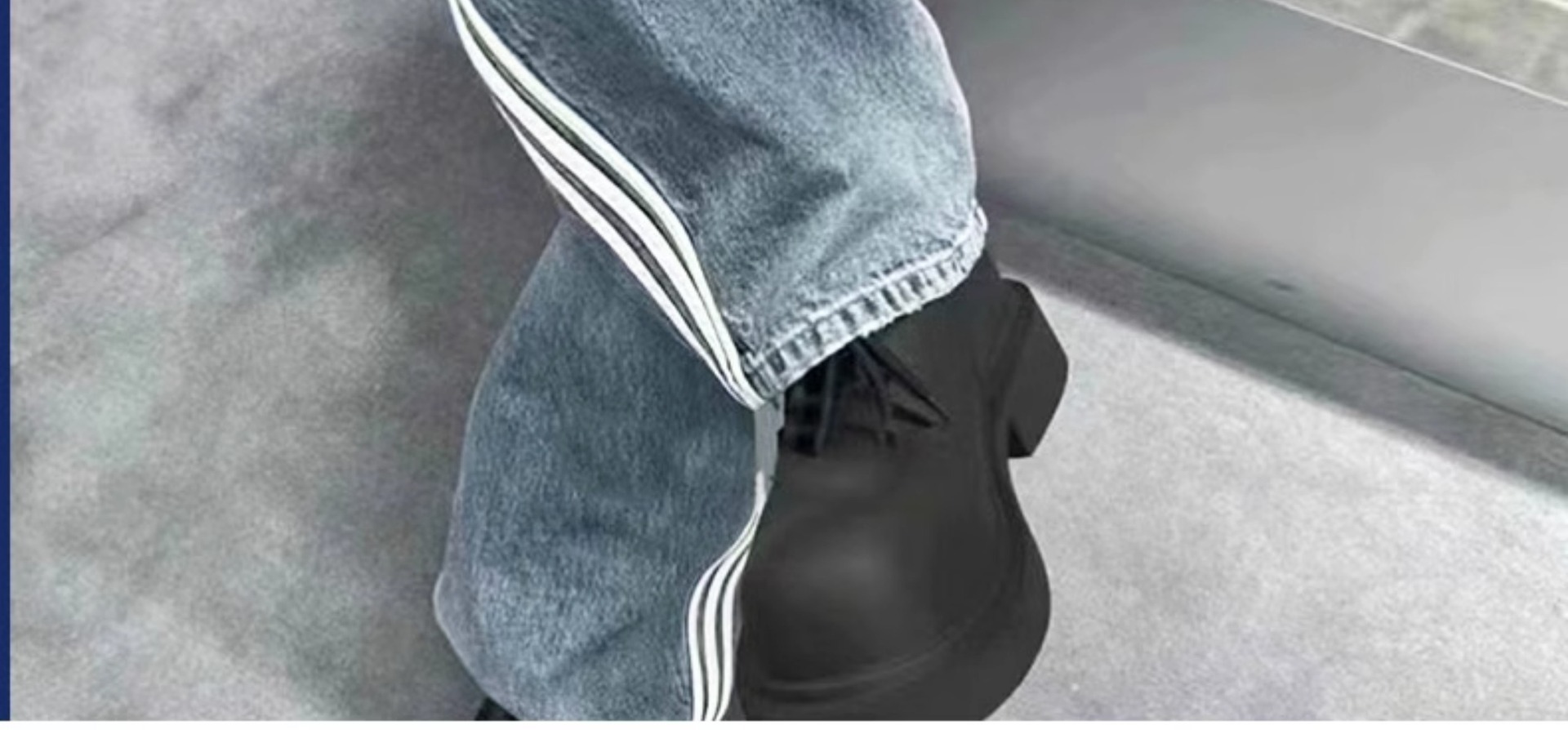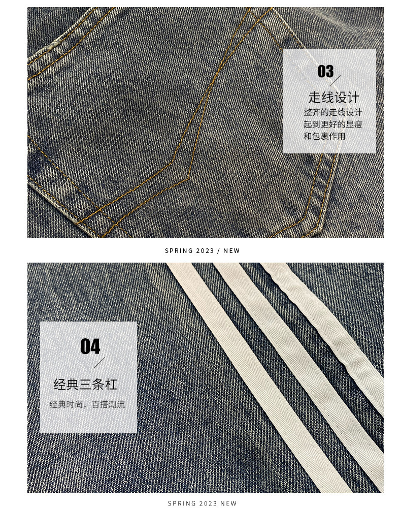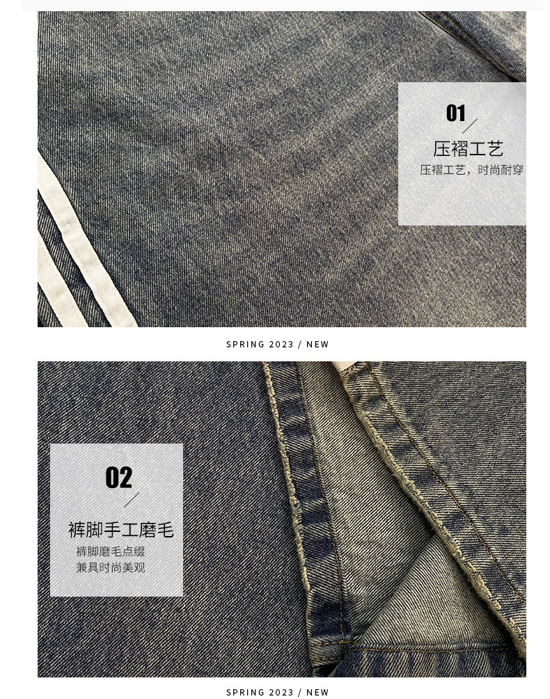 홍콩 스타일 거리 가을 새 줄무늬 청바지 3 바 세척 프로필 블루 와이드 레그 스트레이트 청바지 남성용스토어 가기