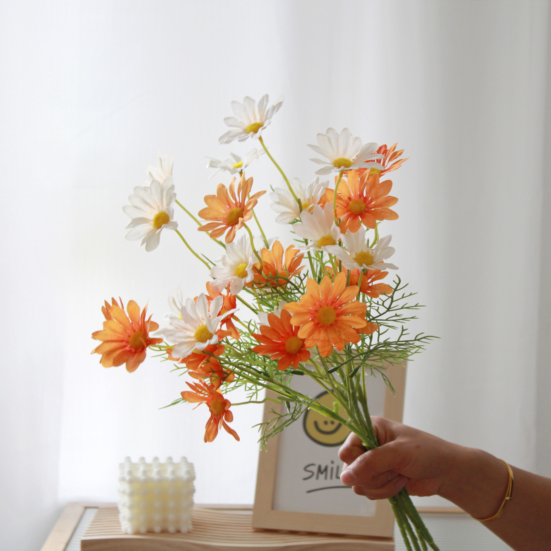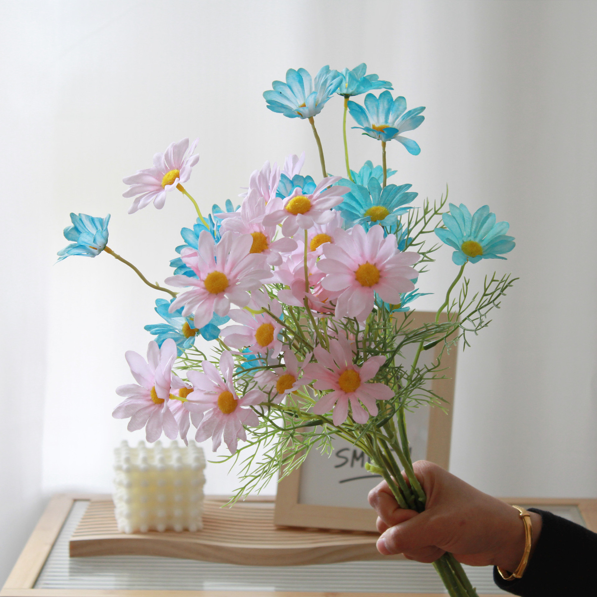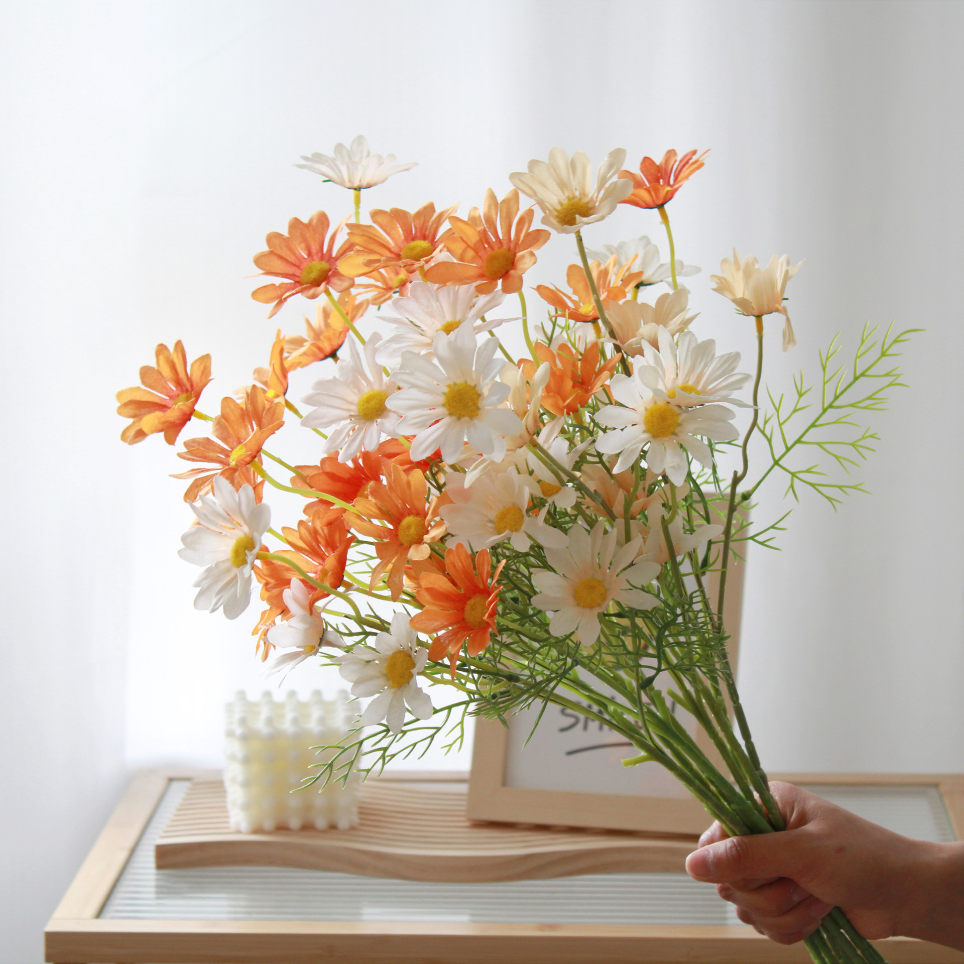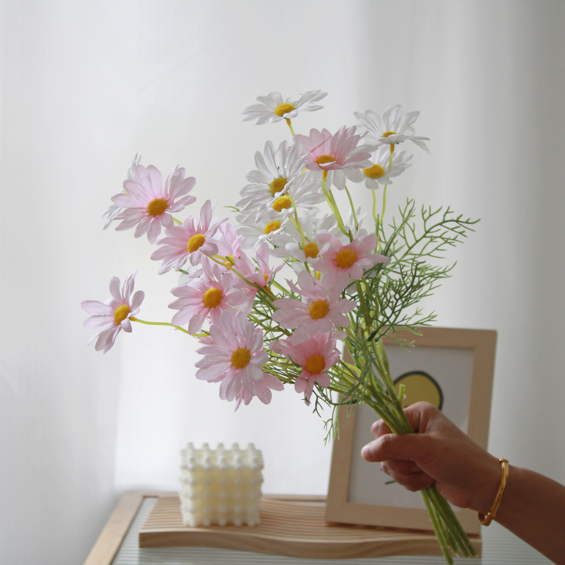 카모마일 데이지 가짜 꽃 꽃다발 바탕 화면 장식 꽃꽂이 실크 꽃 꽃 촬영 소품 테이블 장식품