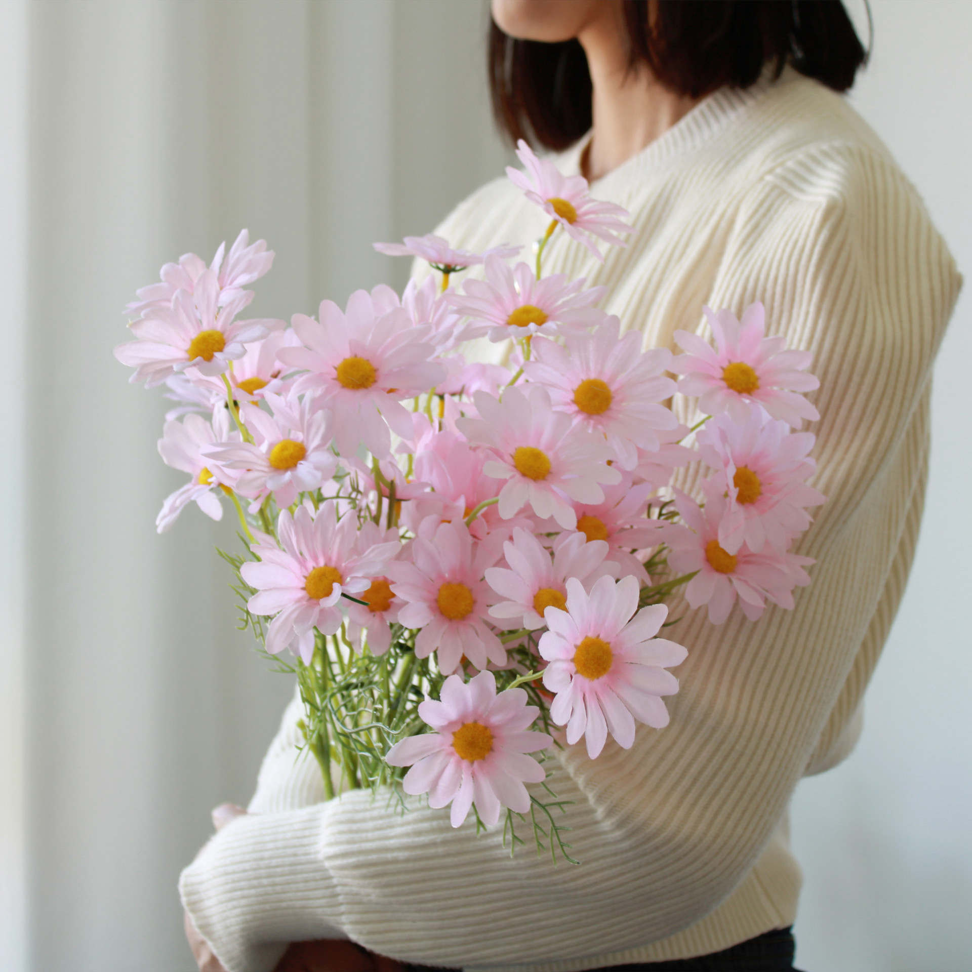 카모마일 데이지 가짜 꽃 꽃다발 바탕 화면 장식 꽃꽂이 실크 꽃 꽃 촬영 소품 테이블 장식품스토어 가기