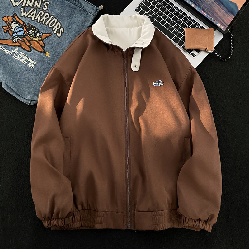 살구색 다크 브라운 빈티지 아메리칸 워크 코트 남성과 여성의 봄과 가을 국가 조수 느슨한 차지 의류 커플 남성 자켓스토어 가기