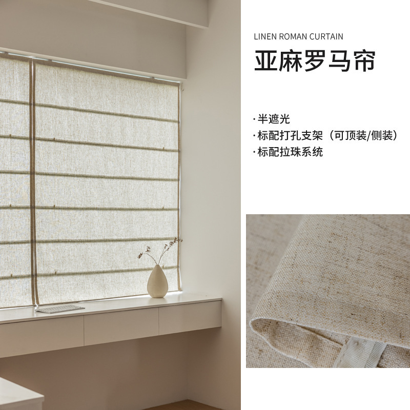 일본식 솔리드 컬러 리넨 원사 로마 커튼 리프팅 커튼 침실 다실 레스토랑 롤러 커튼 사람들의 숙박을위한 투명 한 퍼니스 폴딩