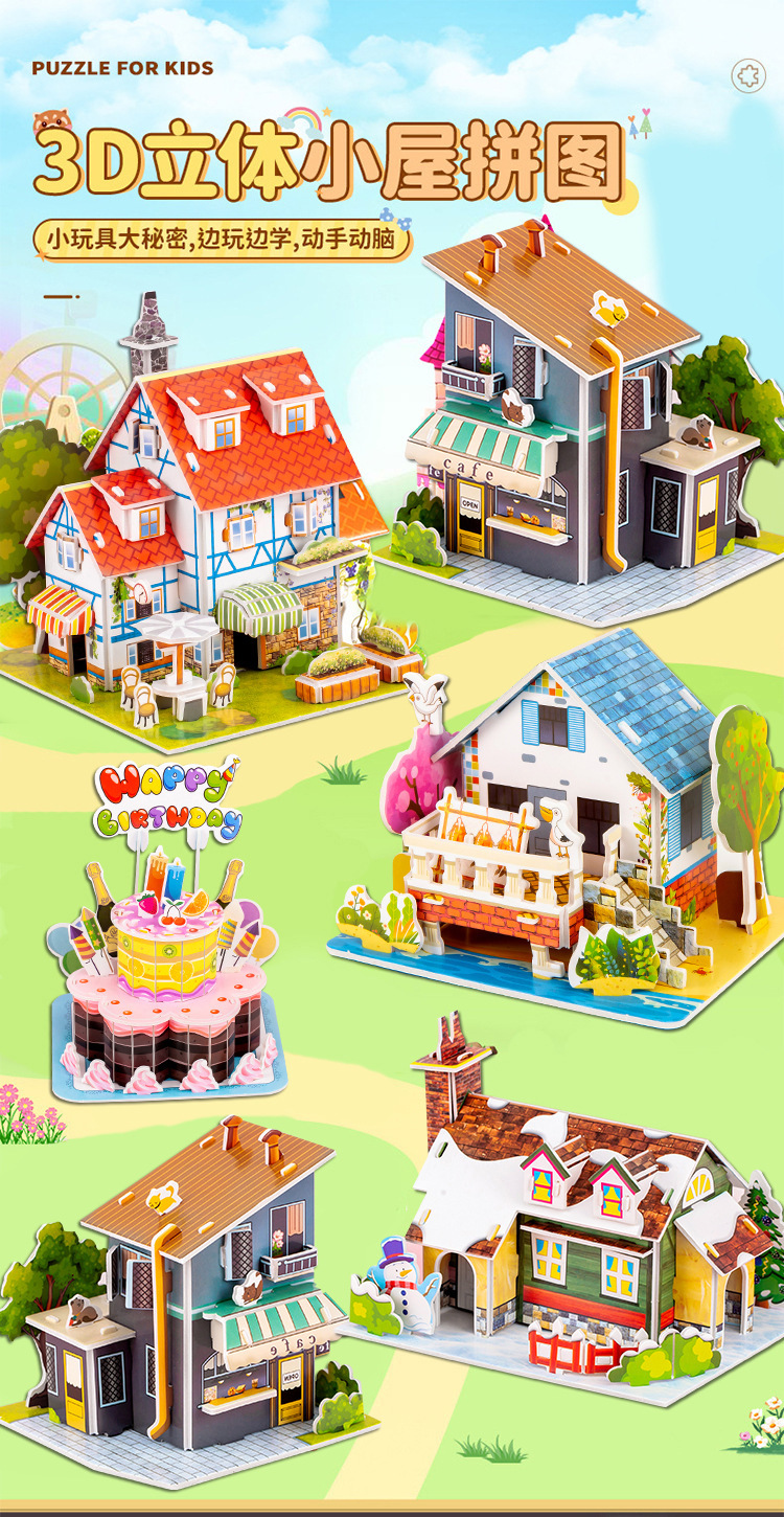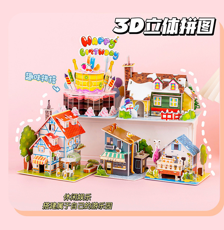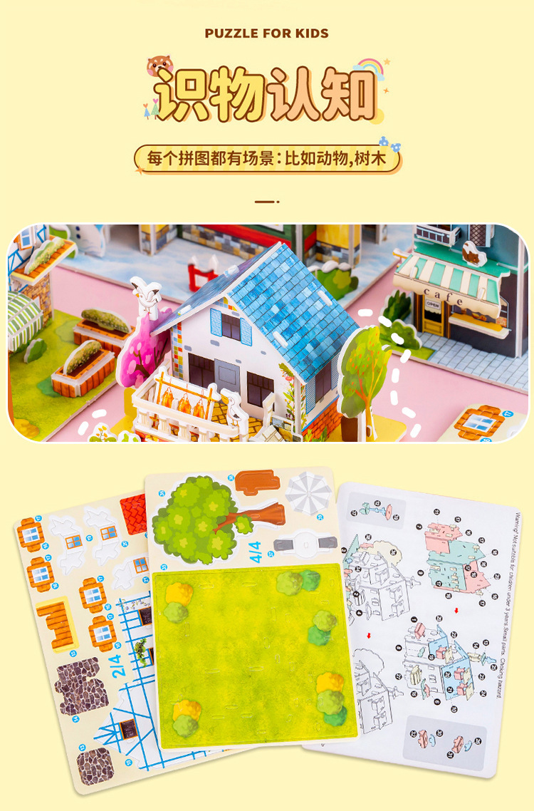 3D 3 차원 풍경 퍼즐 어린이 부모-자식 대화 형 장난감 수제 DIY 장면 퍼즐 어린이 유치원 선물 T스토어 가기