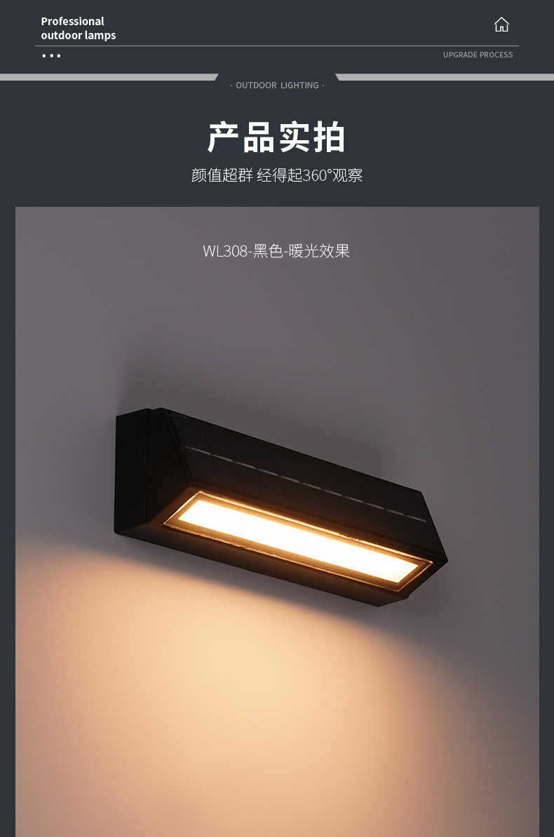 • [슬림삼각형 태양광 벽등] 블랙-31cm-3W
