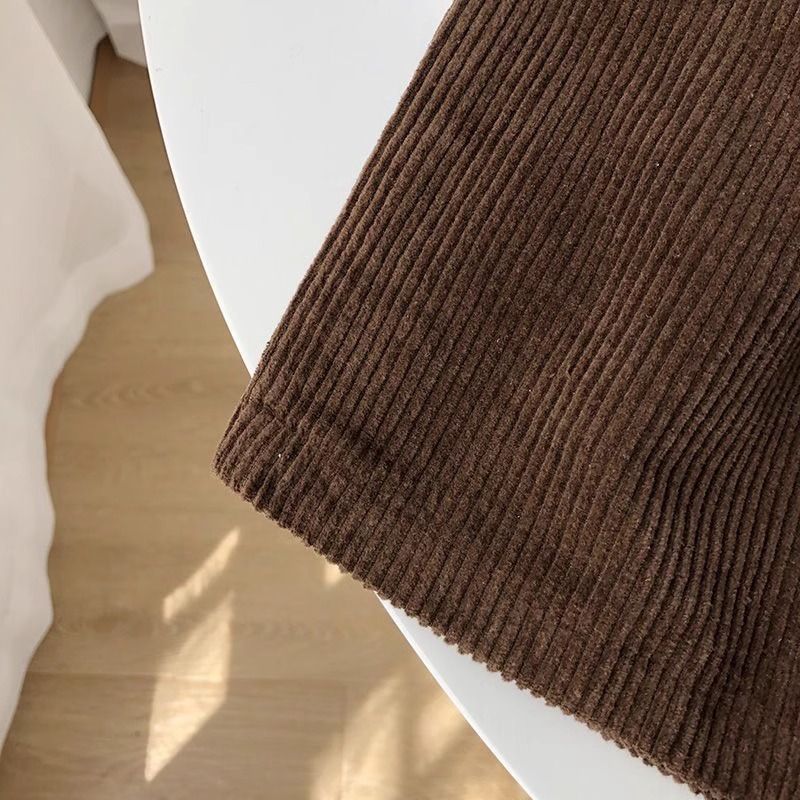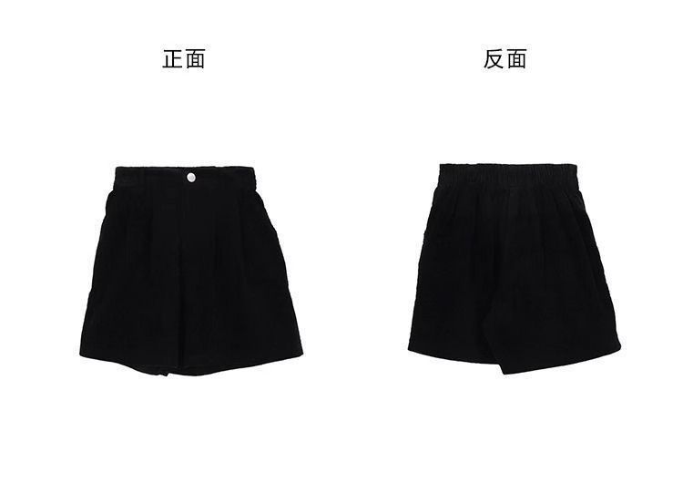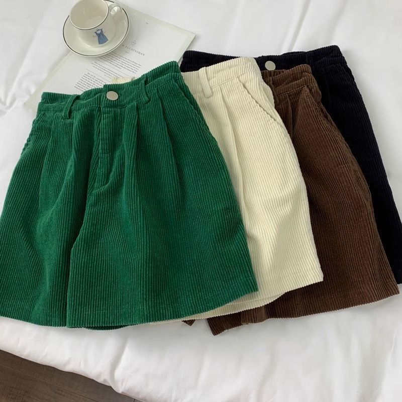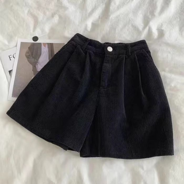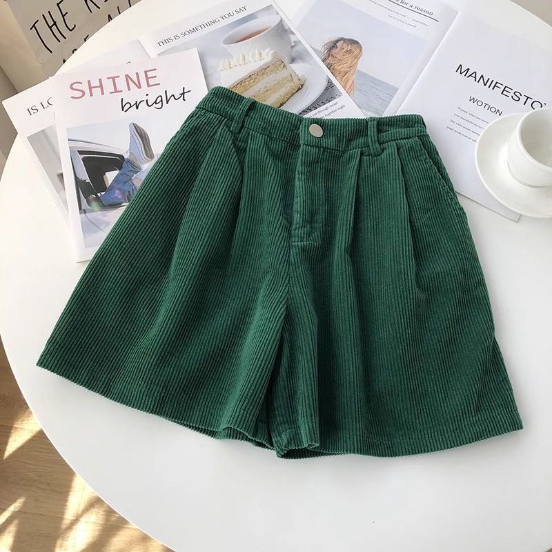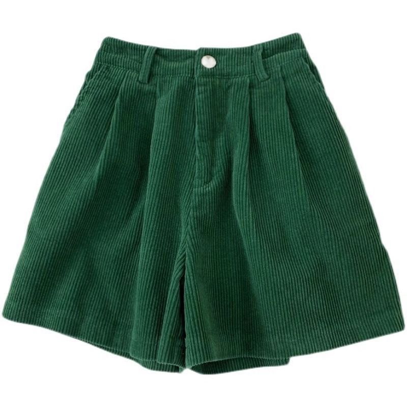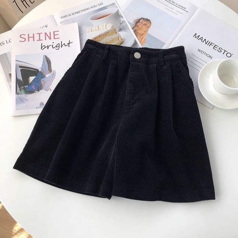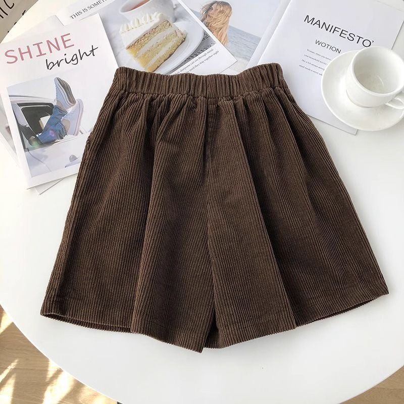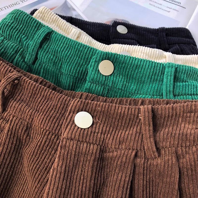 빈티지 높은 허리 느슨한 슬리밍 코듀로이 반바지 여성의 가을과 겨울 새로운 일본 스타일 분위기 감각 작은 넓은 다리 반바지