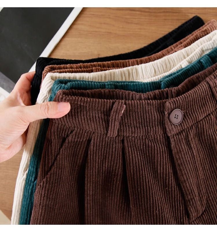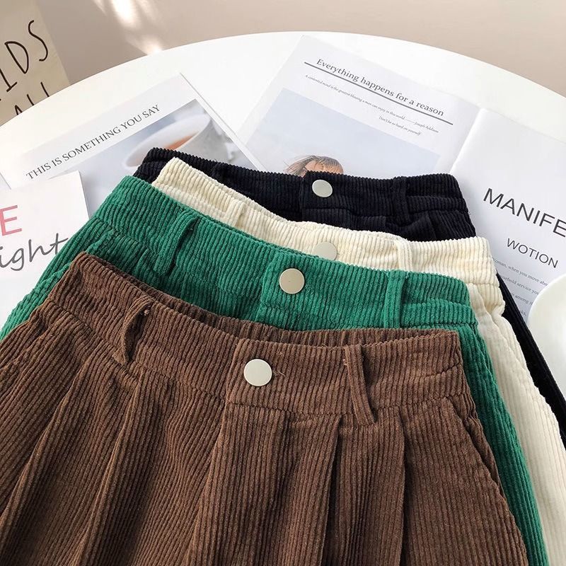 빈티지 높은 허리 느슨한 슬리밍 코듀로이 반바지 여성의 가을과 겨울 새로운 일본 스타일 분위기 감각 작은 넓은 다리 반바지스토어 가기