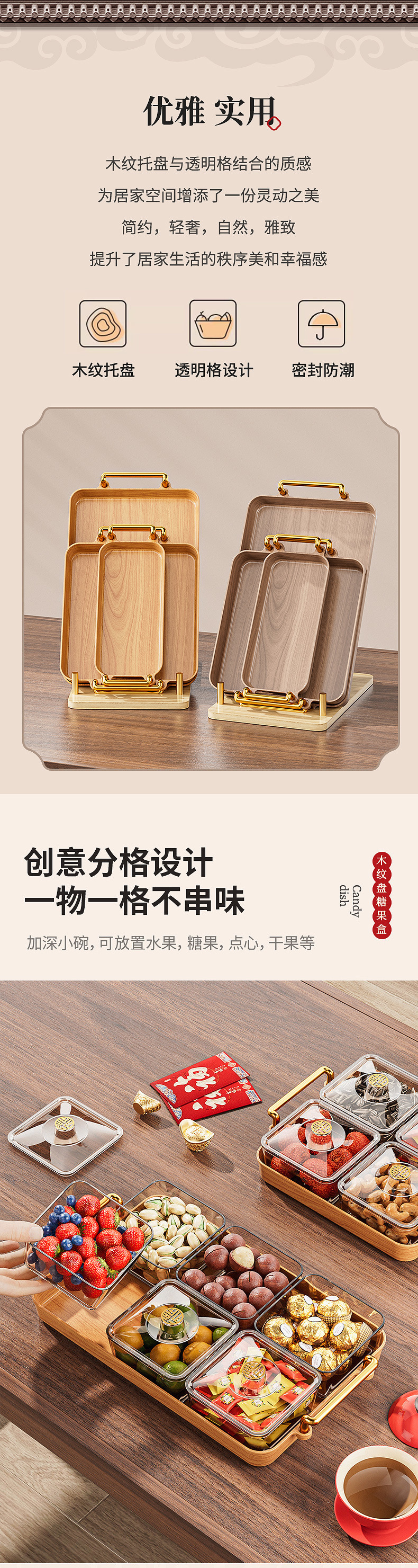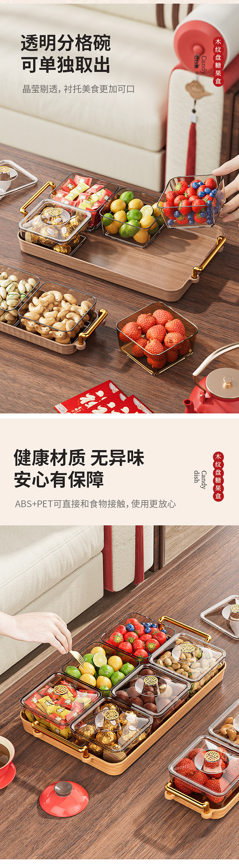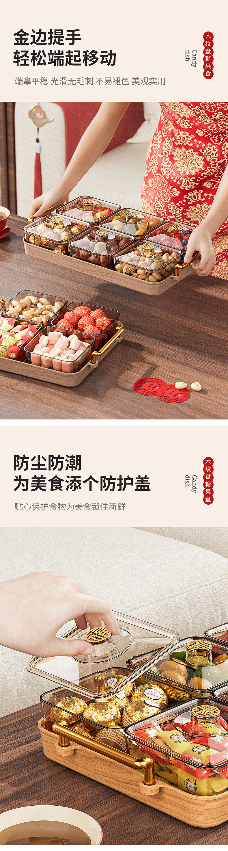 과일 접시 홈 새해 에센셜 봄 축제 공급 새해 과일 접시 실내 2024 새로운 말린 과일 상자 중국 사탕 상자