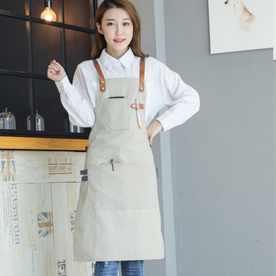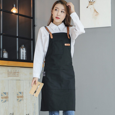 한국식 간단한 캔버스 앞치마 레스토랑 주방 우유 차 커피 숍 바 그림 게스트 주문 로고 남녀 작업복