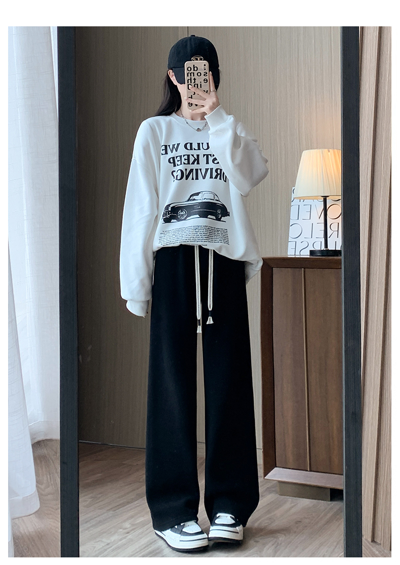 • 블랙 셰르파 [레귤러] [스포츠/캐주얼/와이드 레그/여성 바지/작업복/블랙/바지/스웨트 팬츠/루즈 bf 레이지 스타일/2024