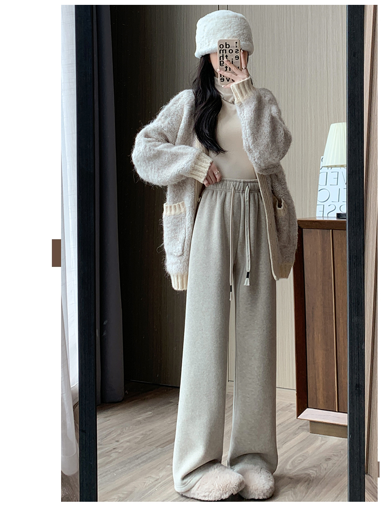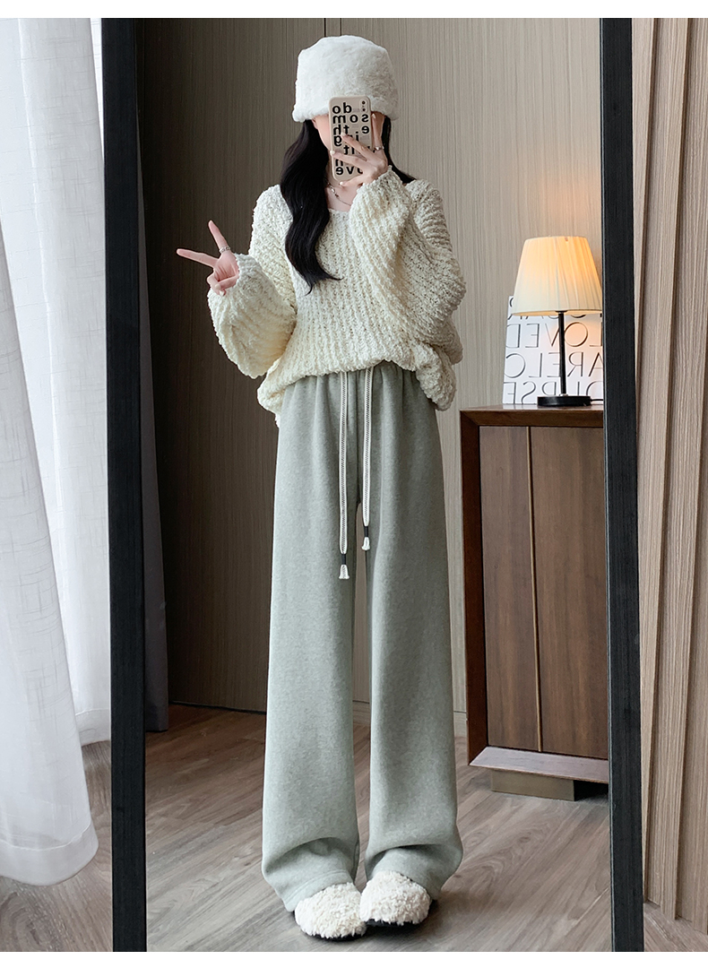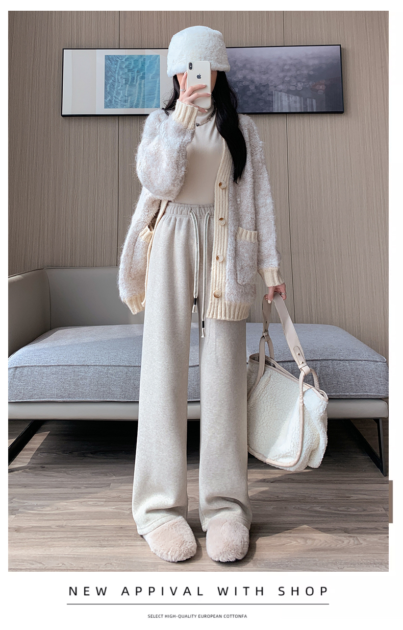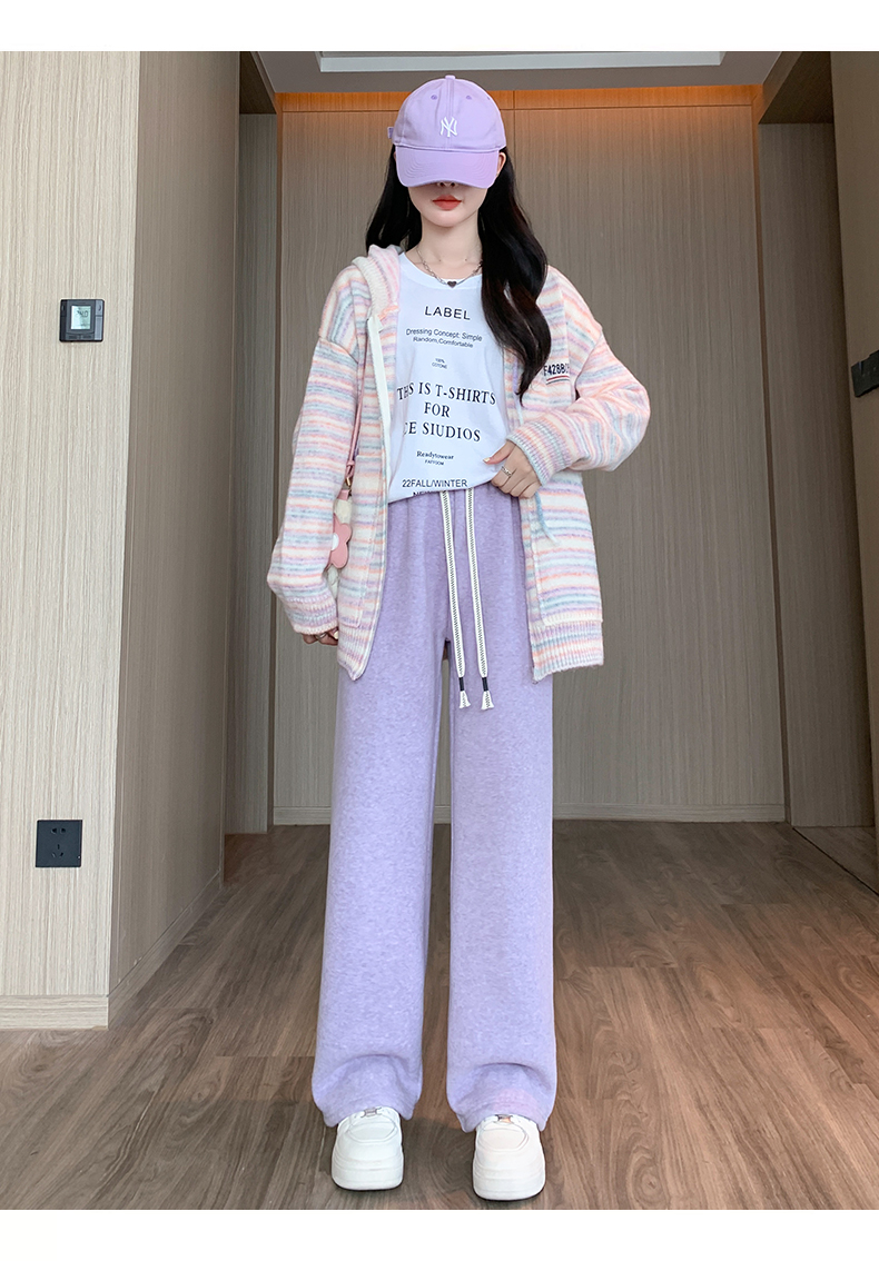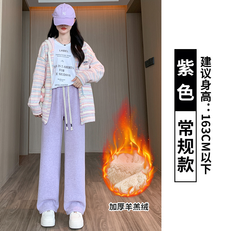 양털 찹쌀 바지 여성용 가을과 겨울 두꺼운 따뜻한 느슨한 슬리밍 게으른 스트레이트 레그 퍼플 캐주얼 수건 와이드 레그 팬츠스토어 가기