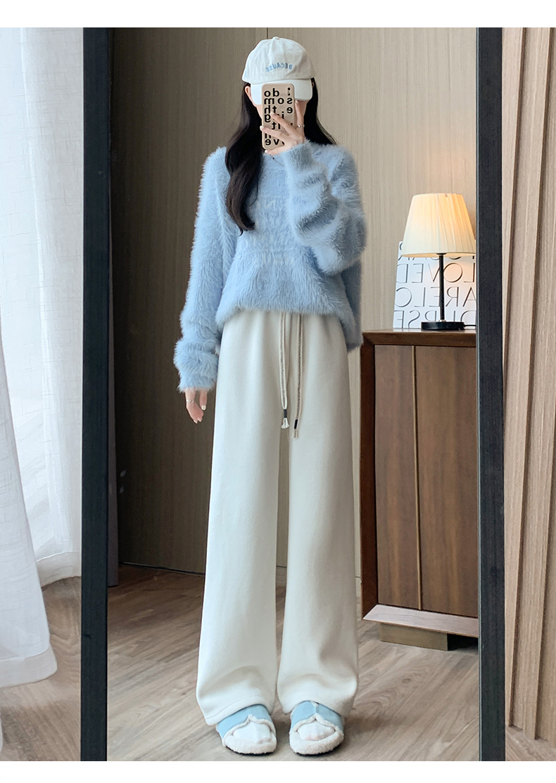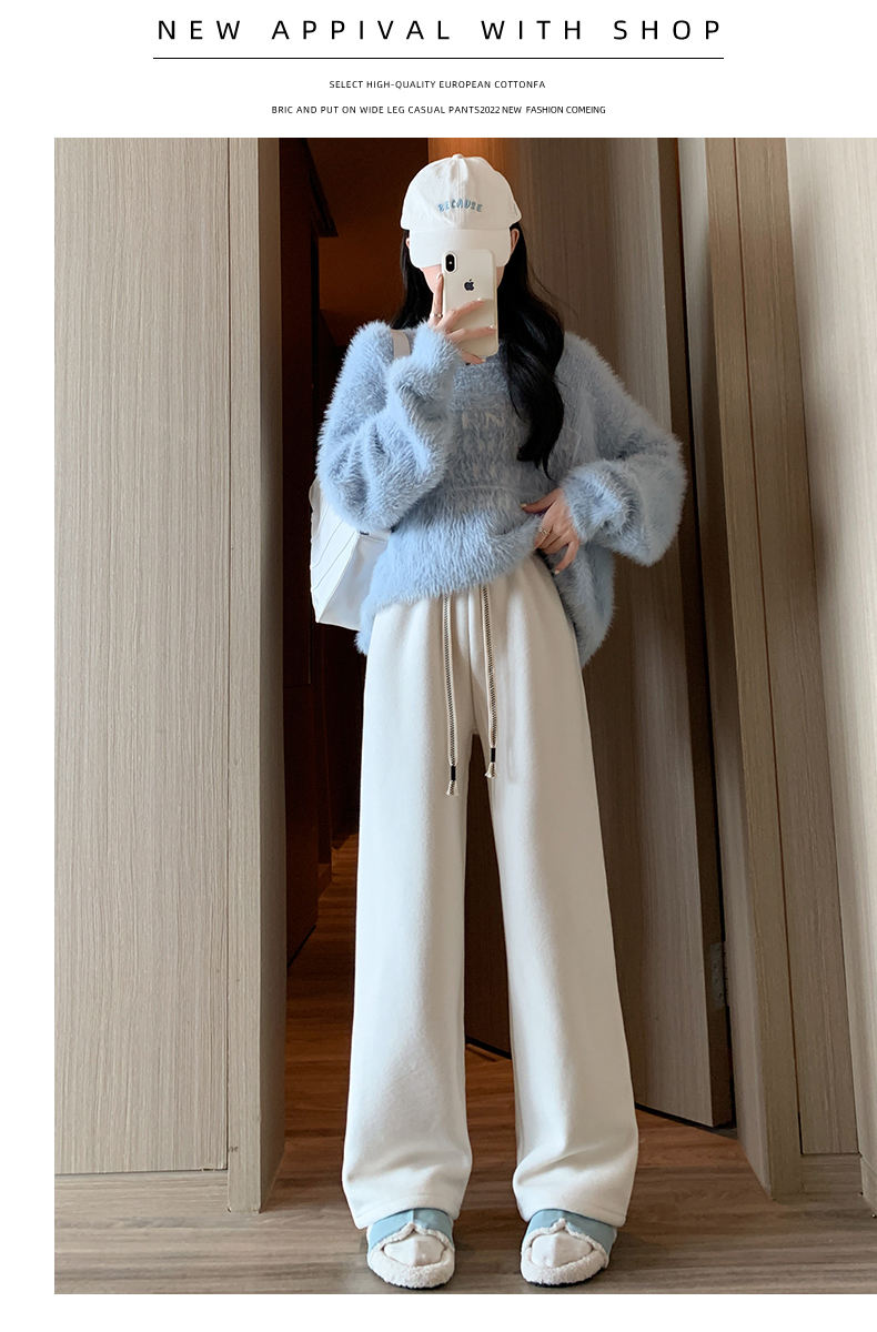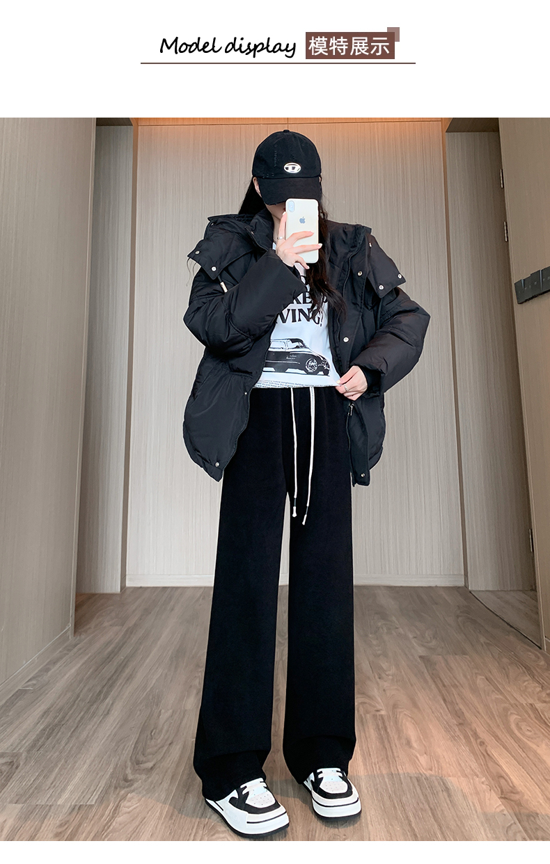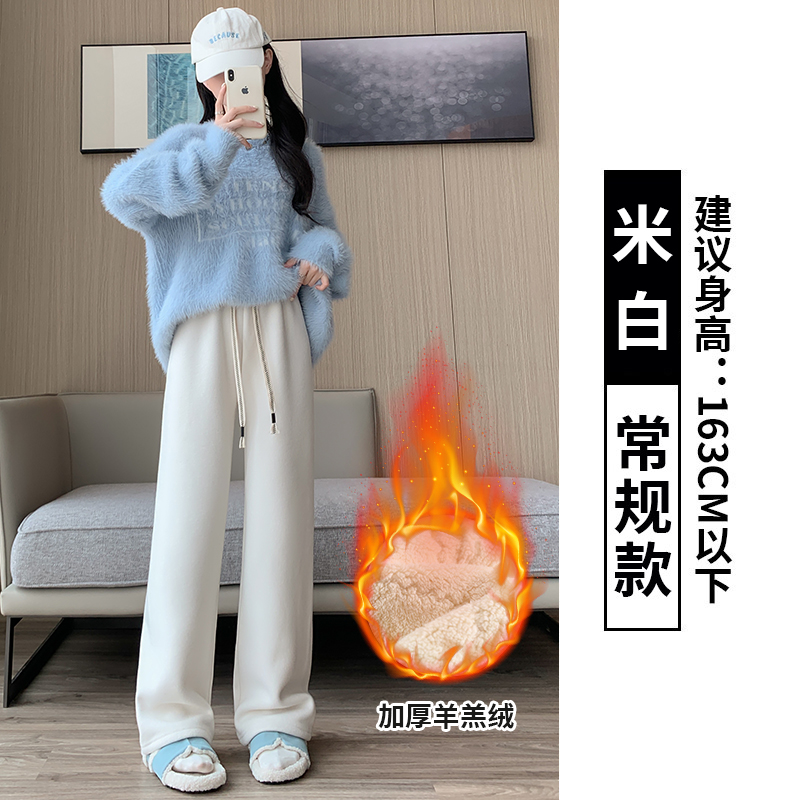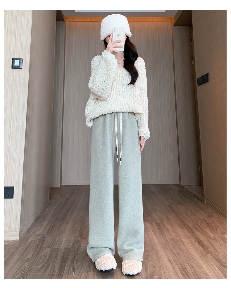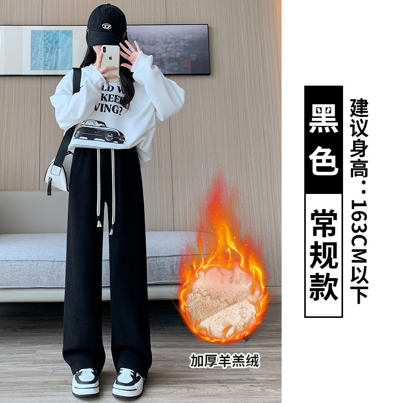 양털 찹쌀 바지 여성용 가을과 겨울 두꺼운 따뜻한 느슨한 슬리밍 게으른 스트레이트 레그 퍼플 캐주얼 수건 와이드 레그 팬츠스토어 가기