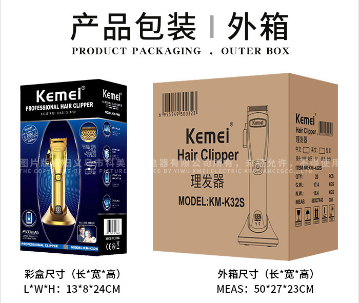 헤어 살롱을위한 고출력 전기 헤어 클리퍼를 KM-K32S 충전베이스가있는 국경 간 코미 헤어 클리퍼 전기 면도기스토어 가기