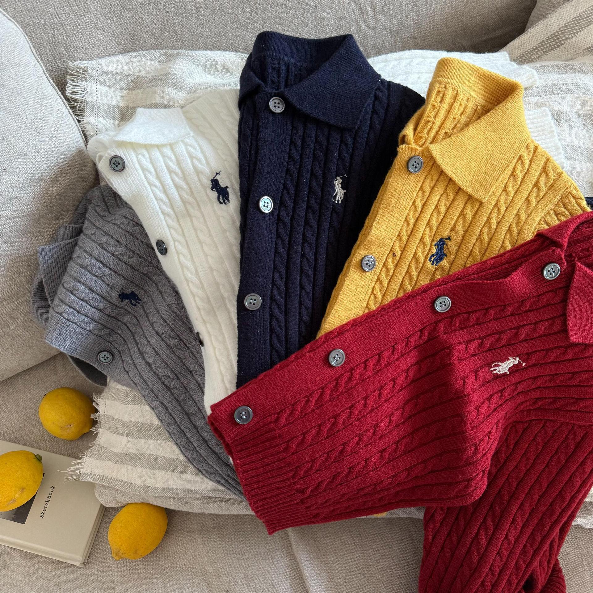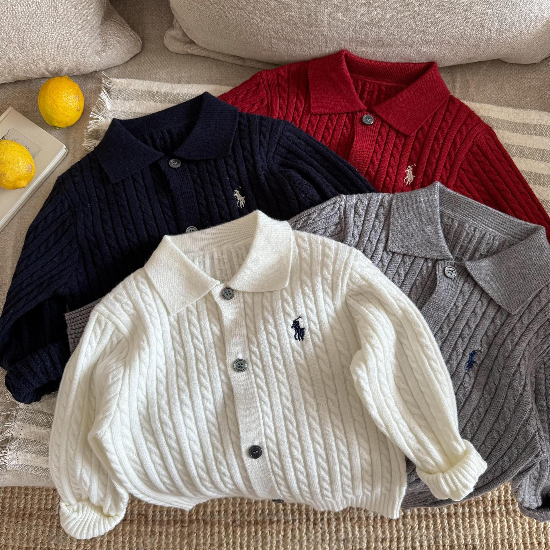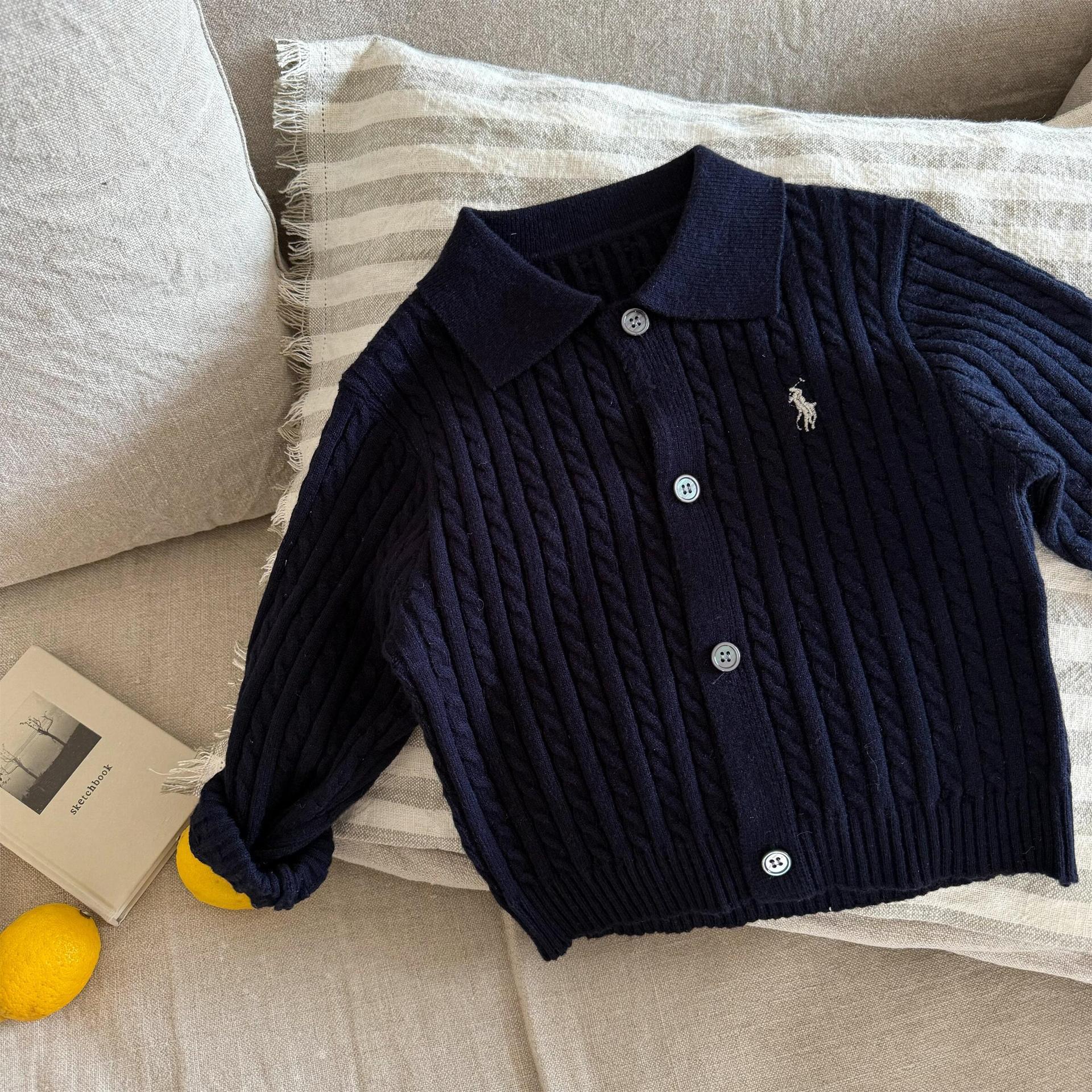 재고 어린이 스웨터 2025 봄 새로운 남녀 아동복 자수 옷깃 스웨터 아기 단색 카디건 조수