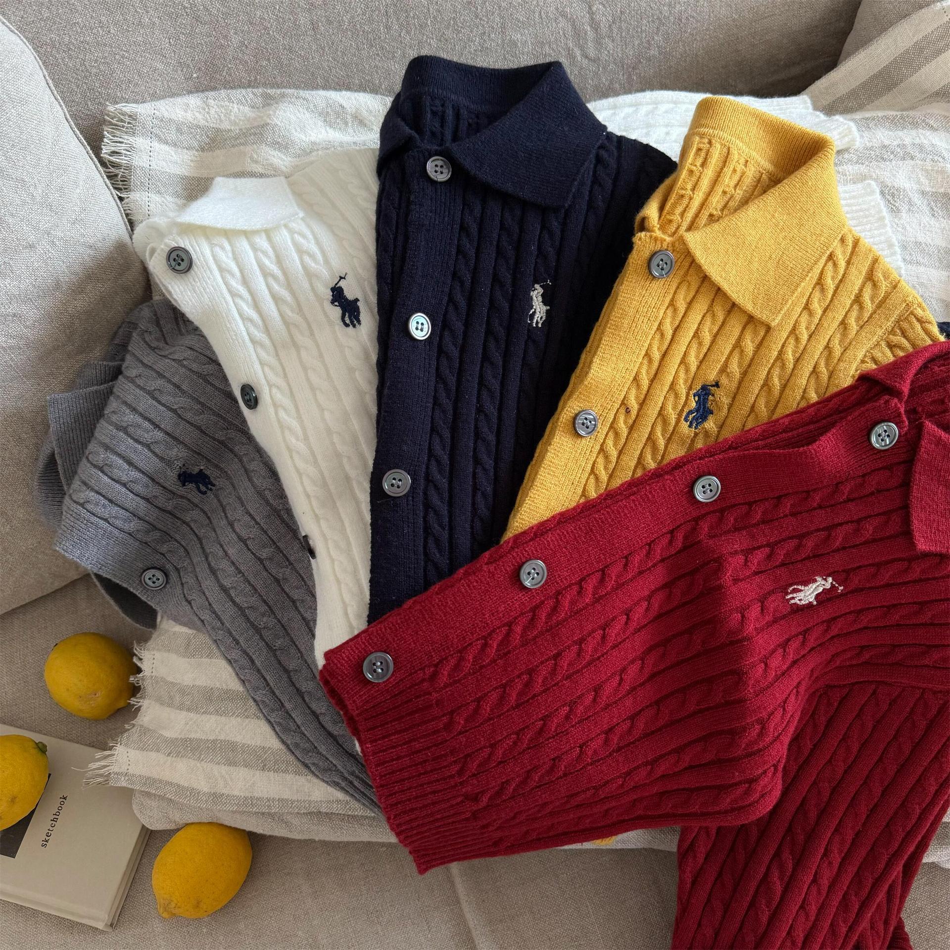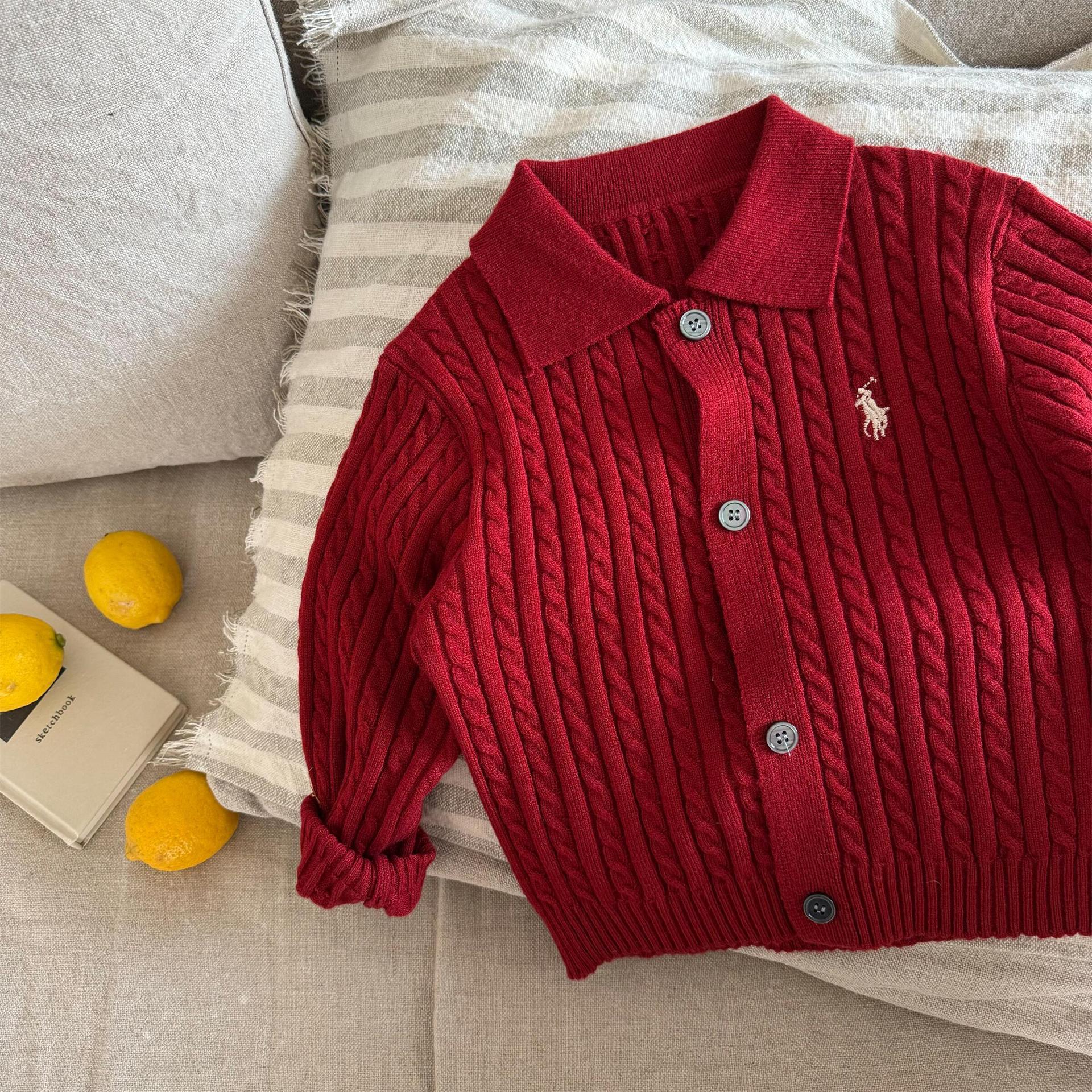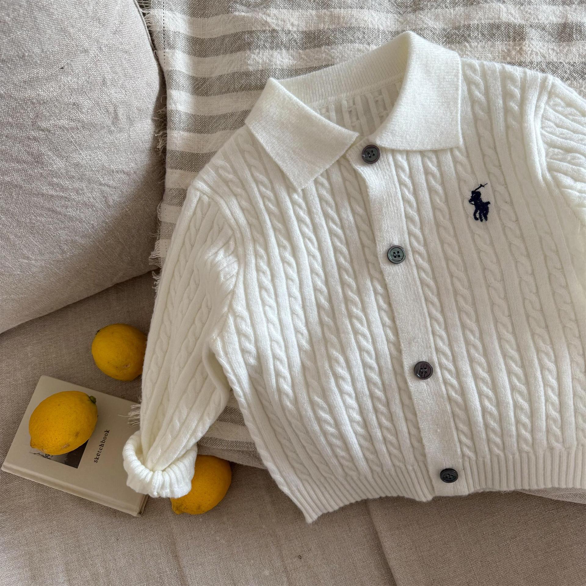 재고 어린이 스웨터 2025 봄 새로운 남녀 아동복 자수 옷깃 스웨터 아기 단색 카디건 조수스토어 가기