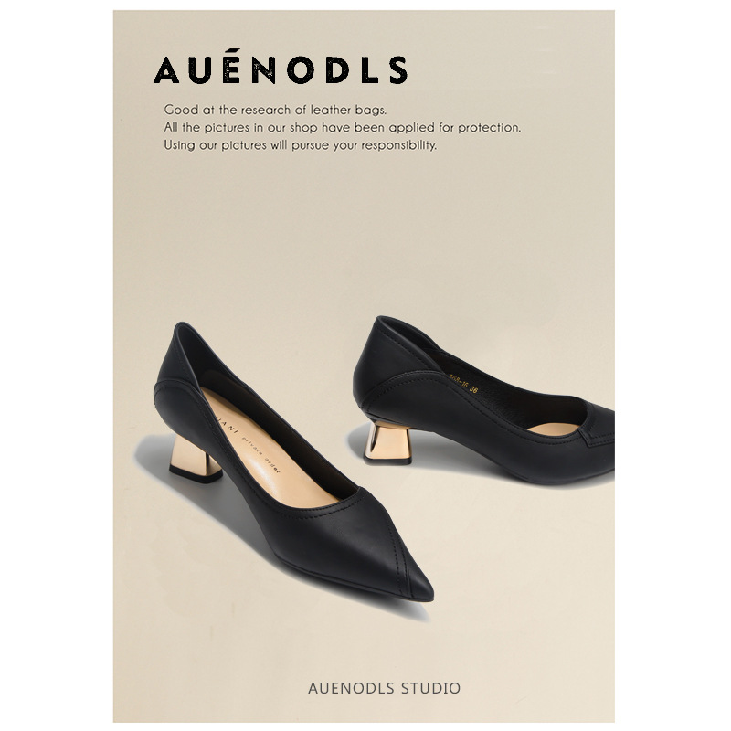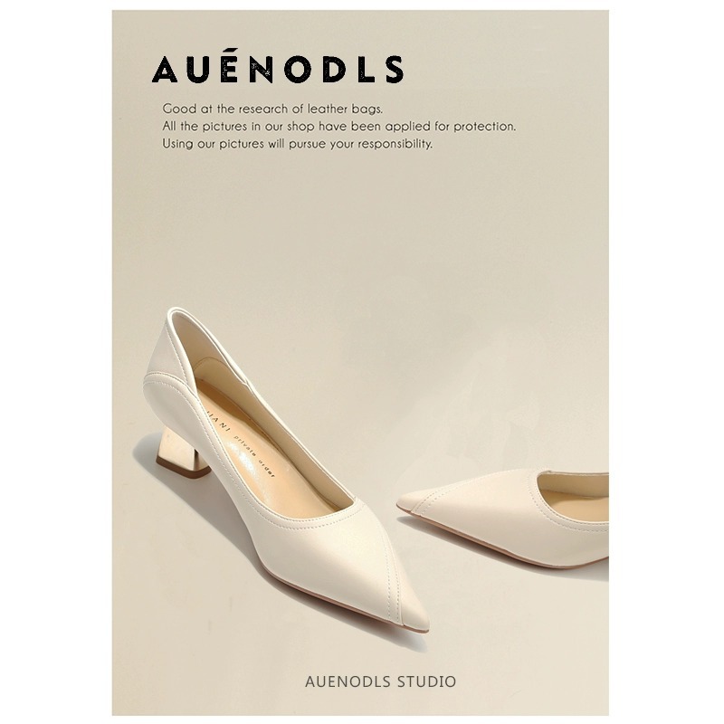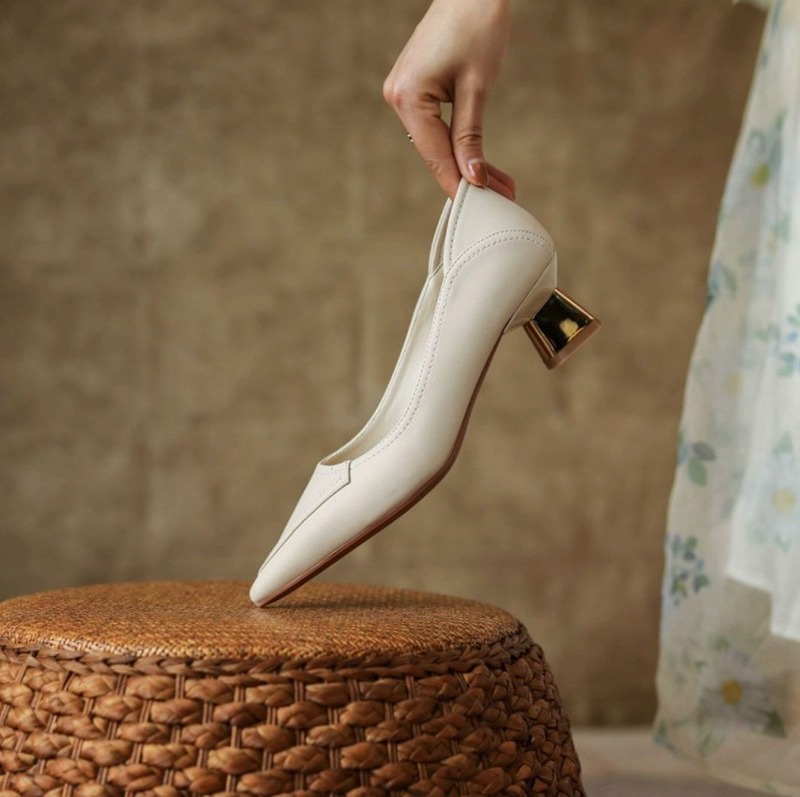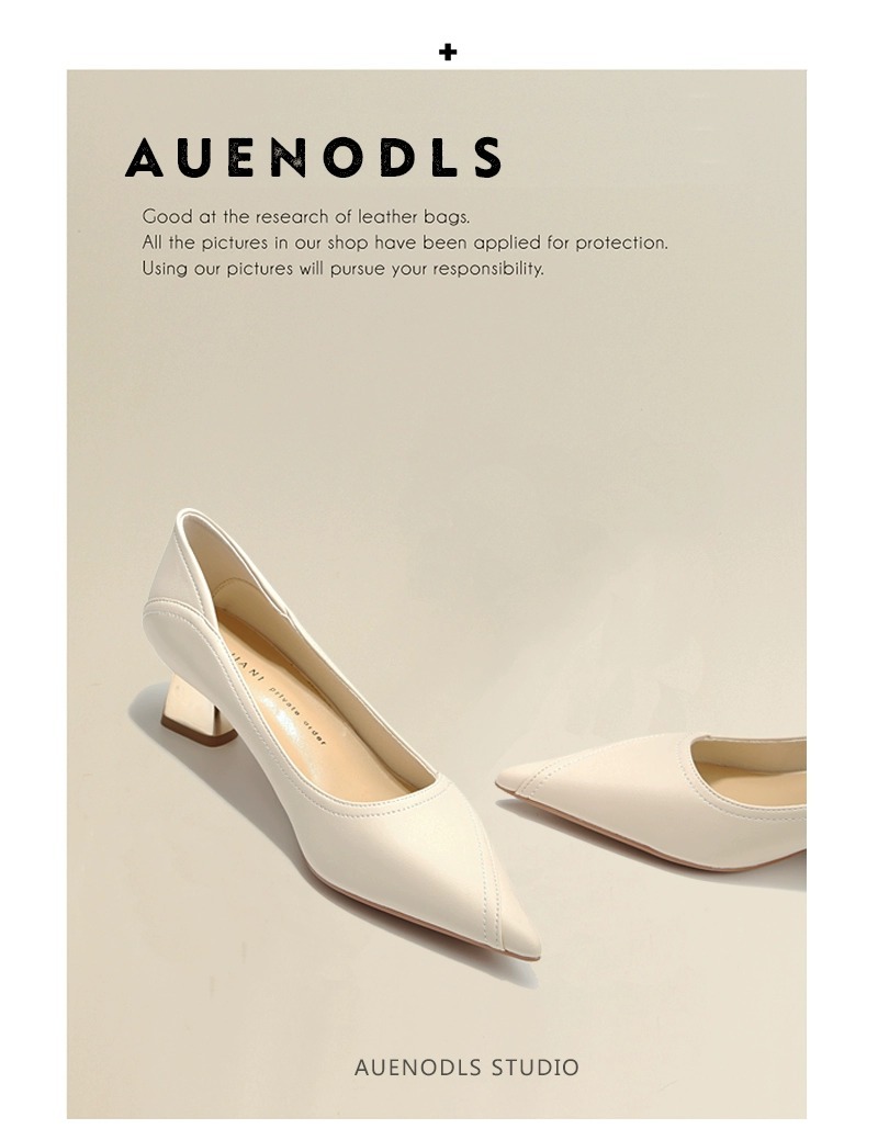 2024 봄 새로운 단색 뾰족한 스티칭 두 착용 두꺼운 힐 하이힐 여성 싱글 신발 yuanlitong 도매스토어 가기