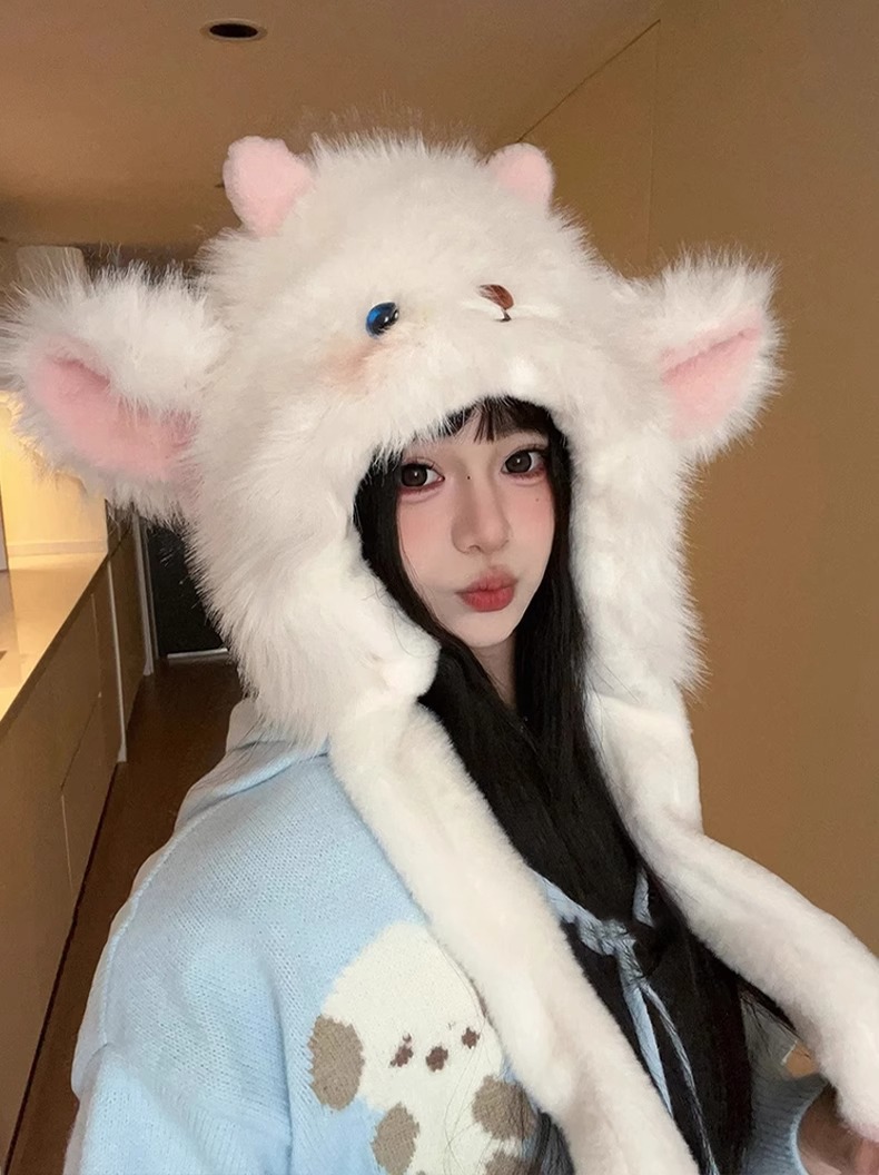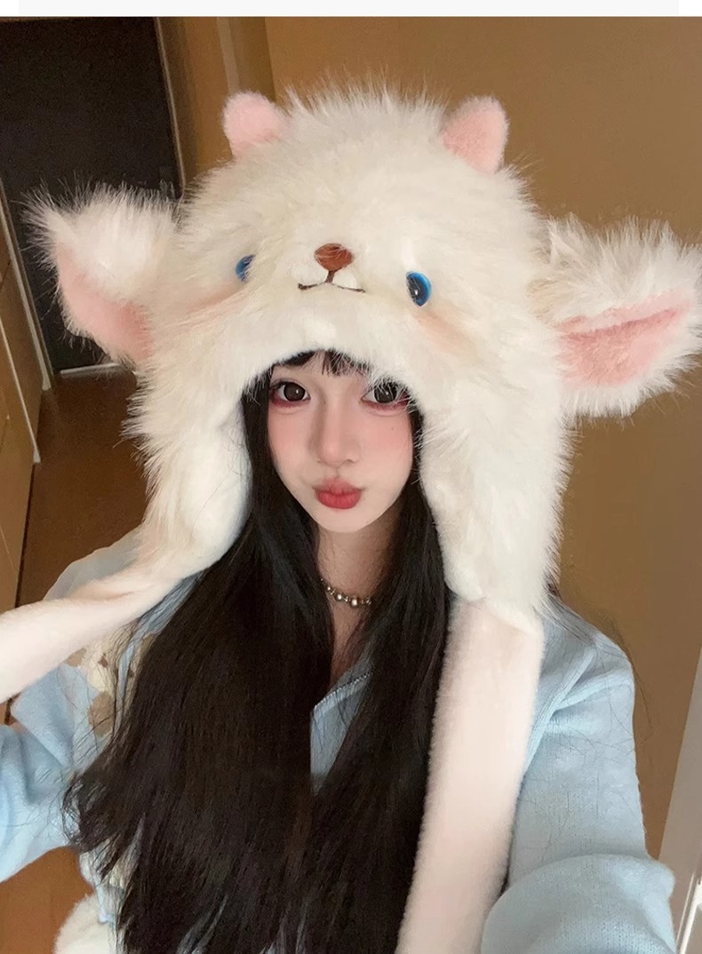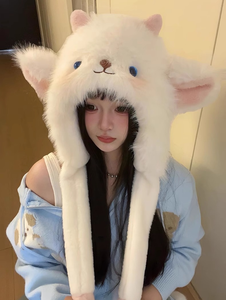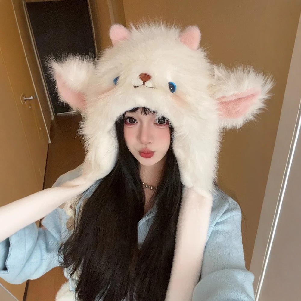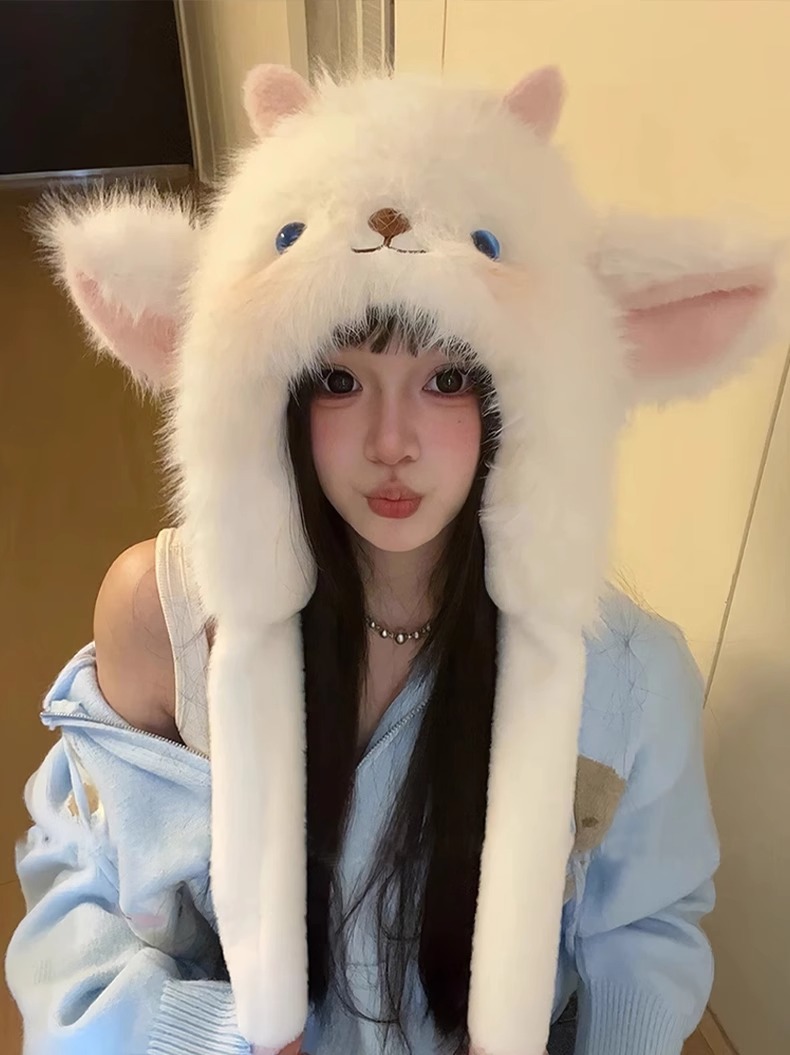 새로운 겨울 인터넷 축하 만화 양고기 두꺼운 무성한 모자 여성 따뜻한 핀치 귀 이동 가능한 귀 보호 방풍 모자