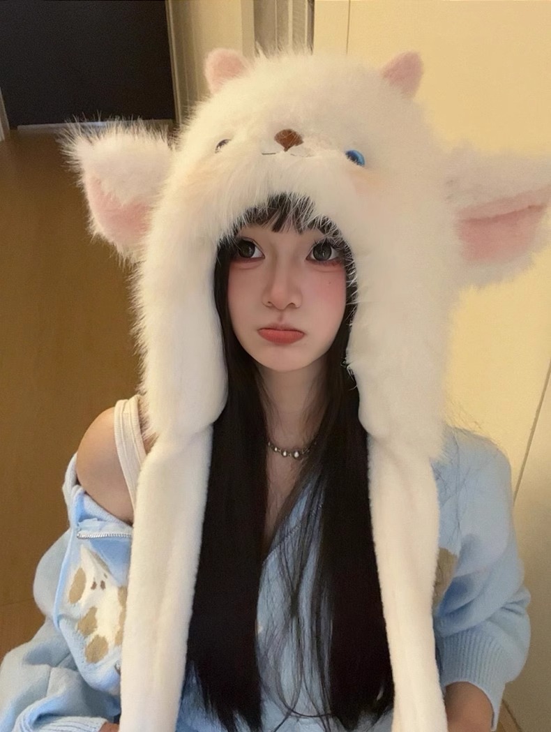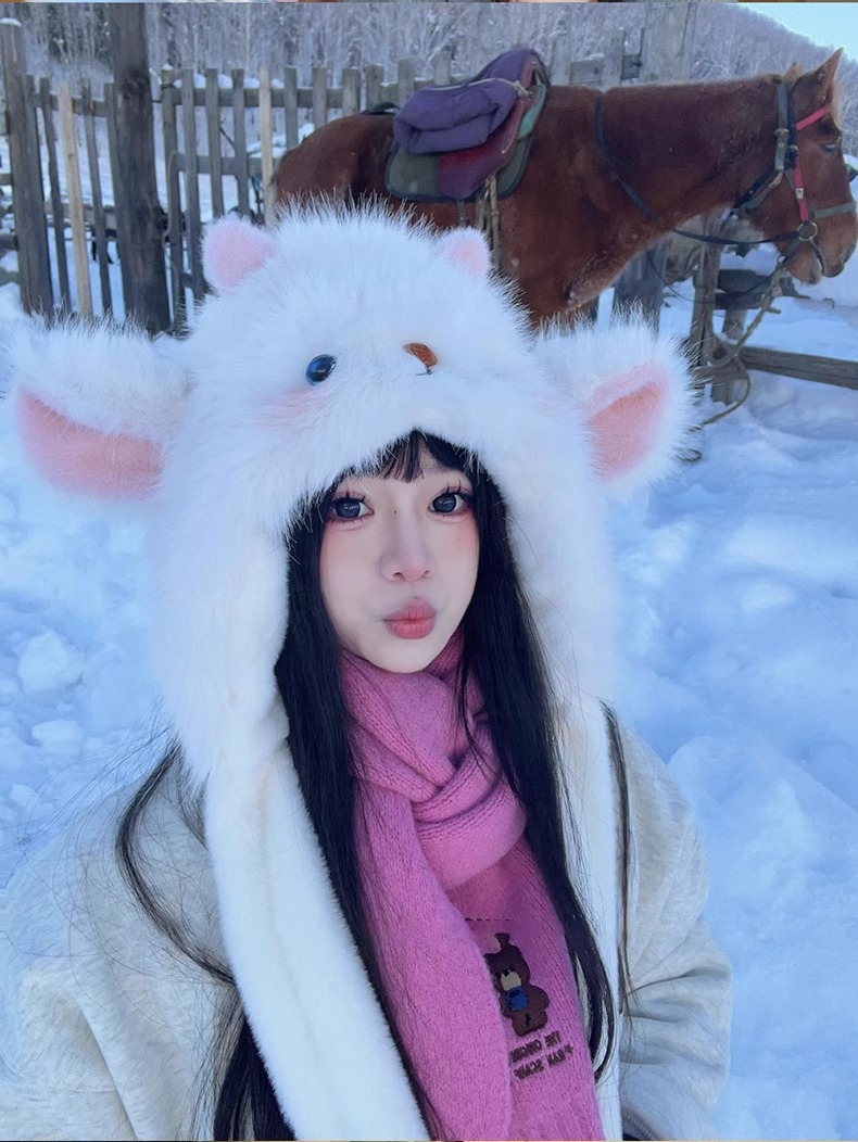 새로운 겨울 인터넷 축하 만화 양고기 두꺼운 무성한 모자 여성 따뜻한 핀치 귀 이동 가능한 귀 보호 방풍 모자스토어 가기