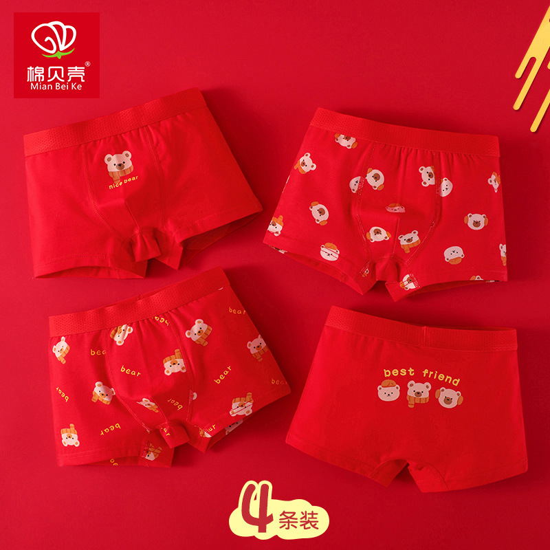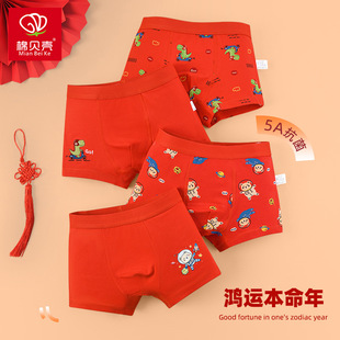 2025년 어린이용 붉은 속옷, 순면 사각팬티, 뱀의 해, A형, 엉덩이가 꼬이지 않는 중대형 남아용 반바지스토어 가기