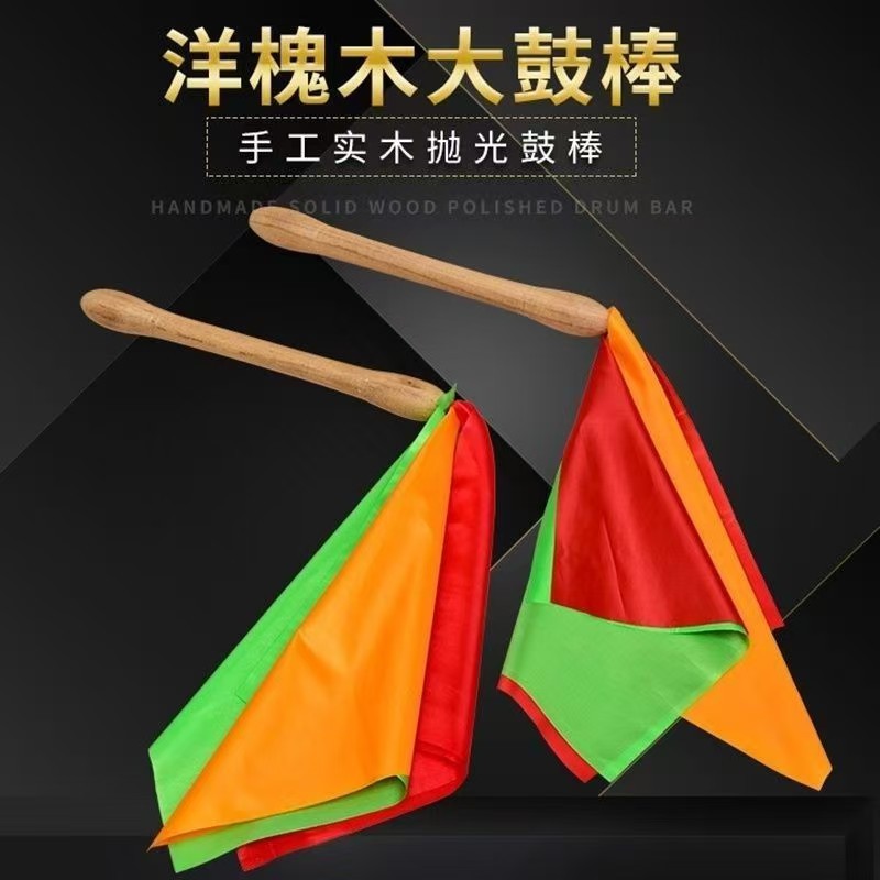• 36cm 아카시아 나무 큰 머리 드럼 스틱에는 빨간색, 노란색 및 녹색 실크가 함께 제공됩니다.