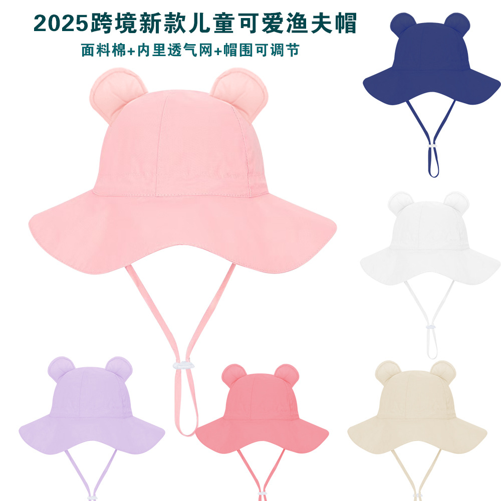 국경 간 새로운 어린이 선 스크린 어부 모자 아기 태양 모자 만화 토끼 귀 아기 모자 통기성 아기 분지 모자스토어 가기