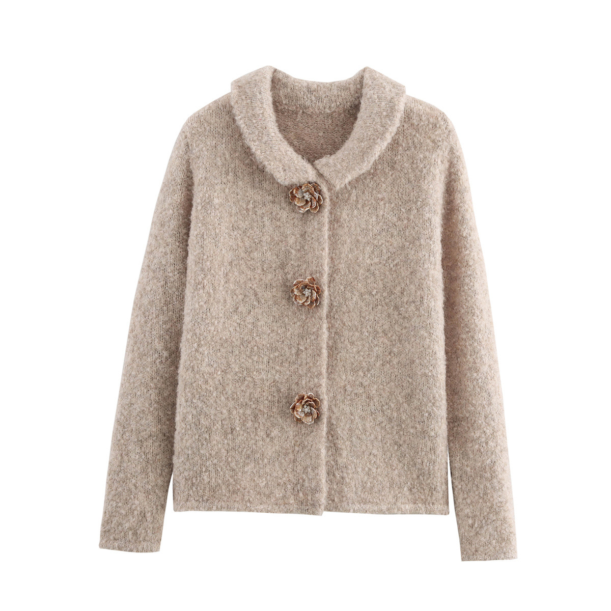 UC & ZA 아마존 국경 여성 꽃 버클 가짜 모피 효과 니트 코트 9598175