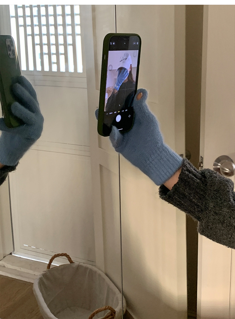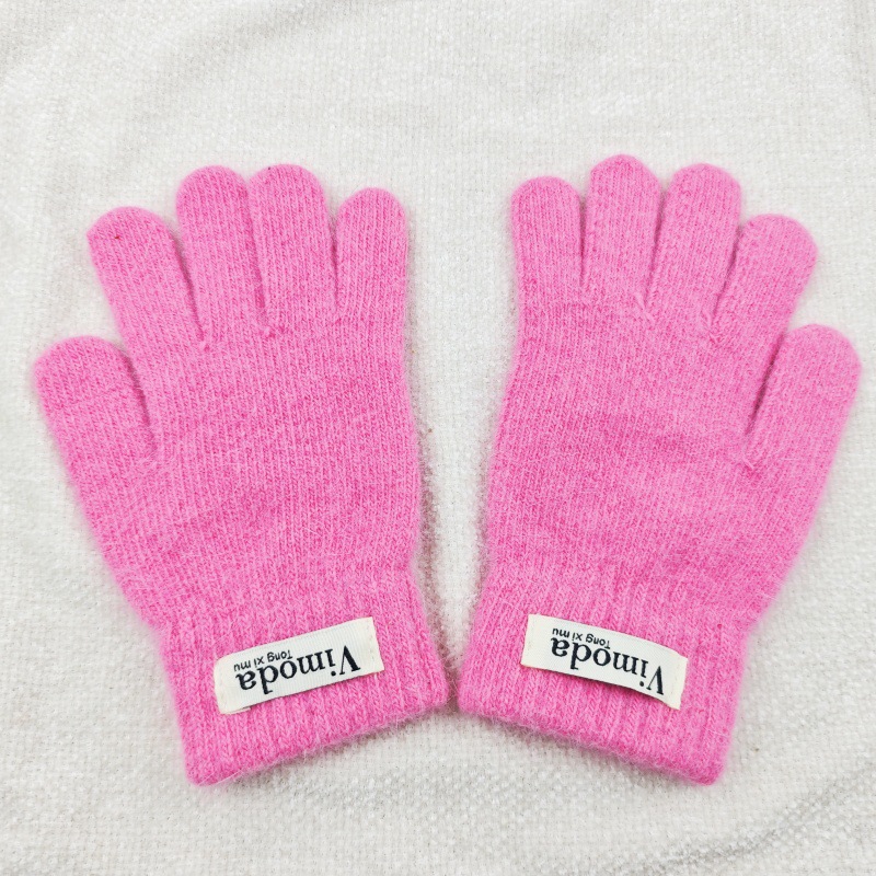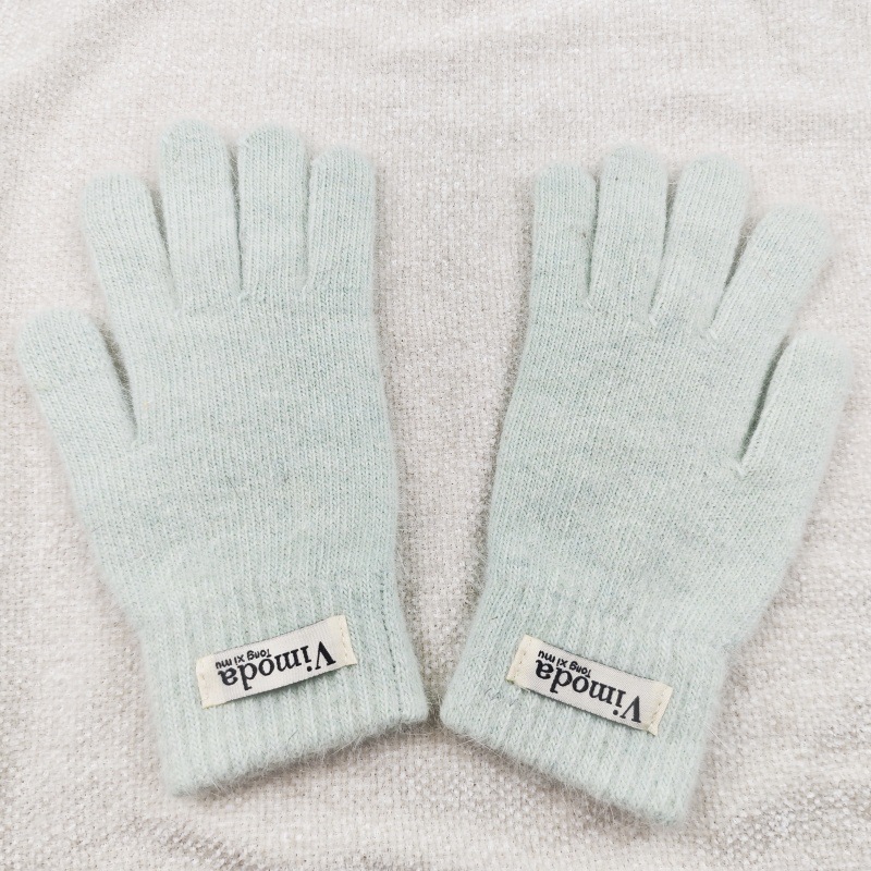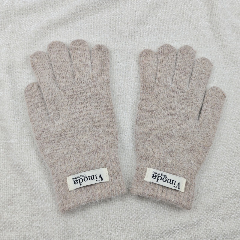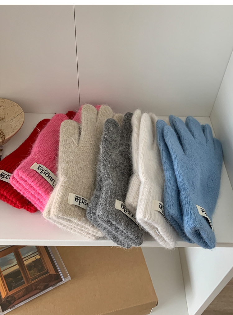 겨울철 방한을 위한 여성용 한국식 니트 따뜻한 장갑에 벨벳과 두꺼운 토끼털 라벨을 더한 핑거리스 사이클링 및 터치스크린스토어 가기