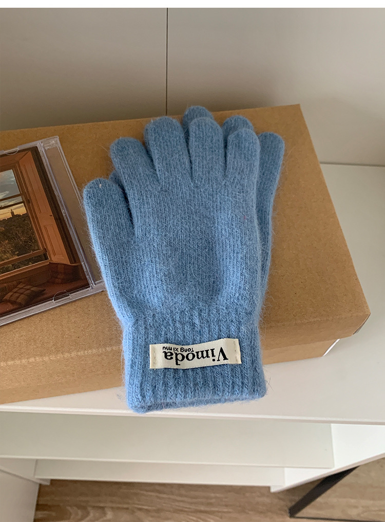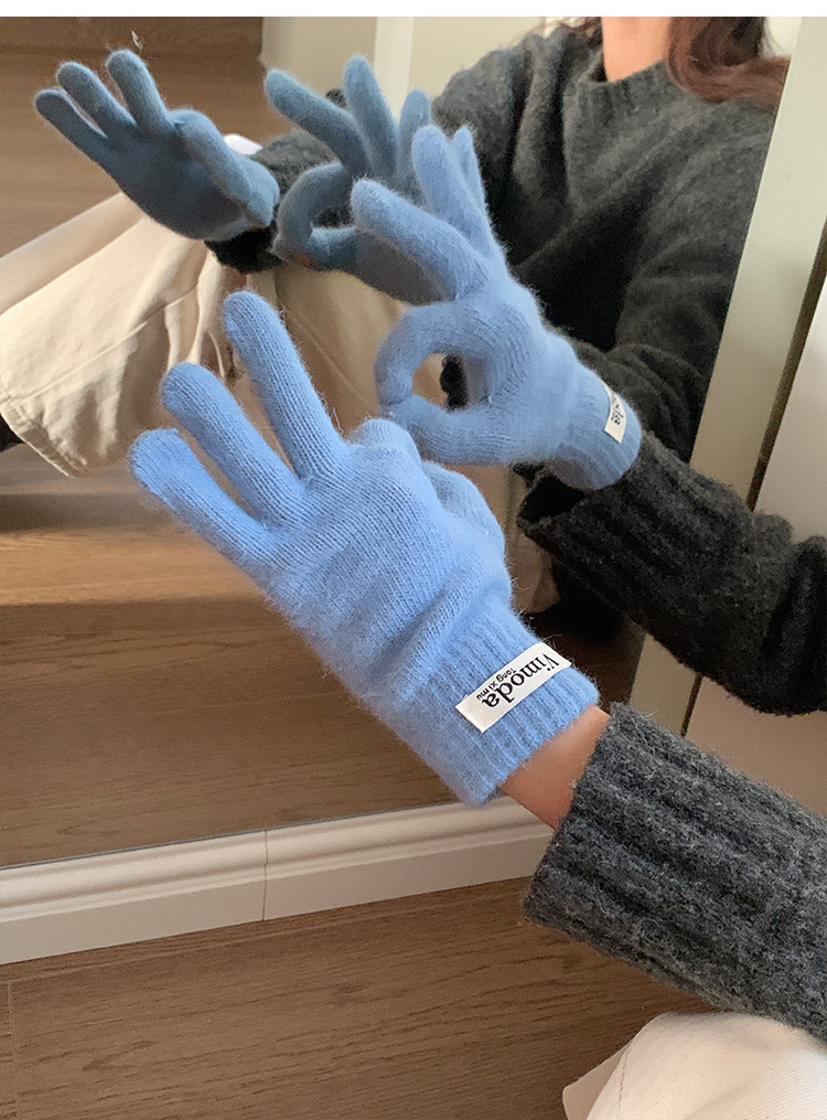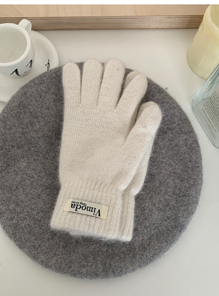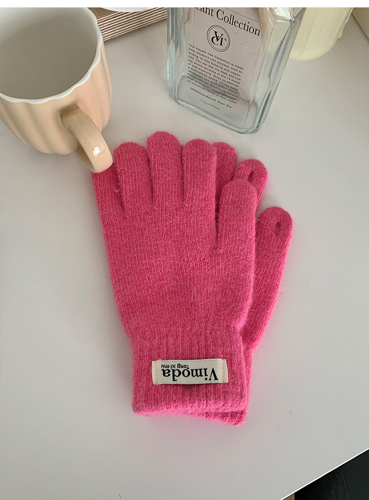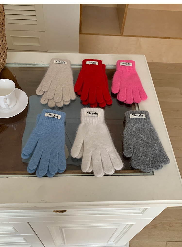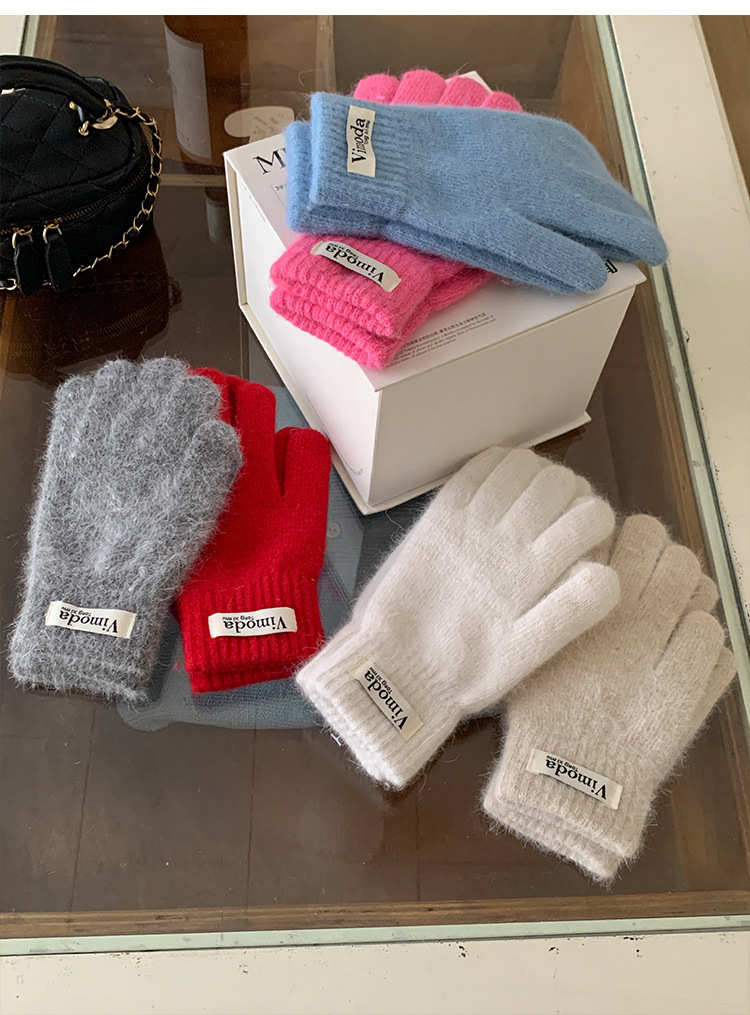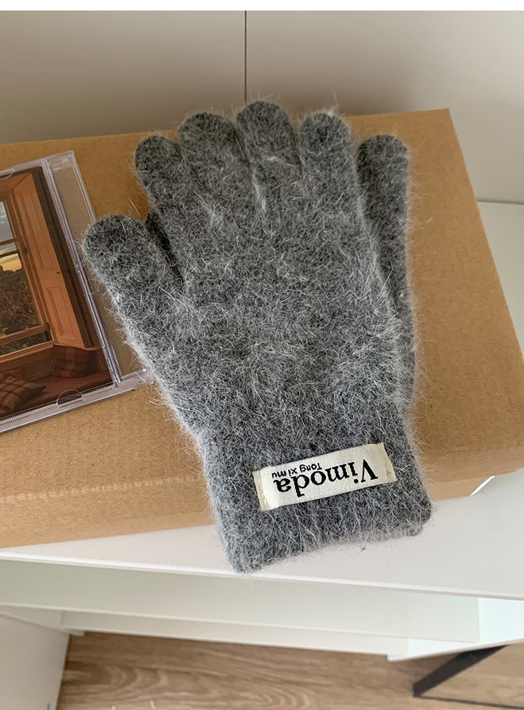 겨울철 방한을 위한 여성용 한국식 니트 따뜻한 장갑에 벨벳과 두꺼운 토끼털 라벨을 더한 핑거리스 사이클링 및 터치스크린