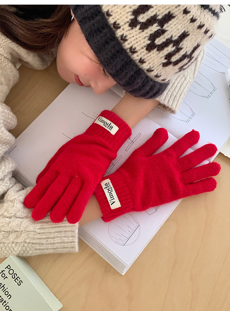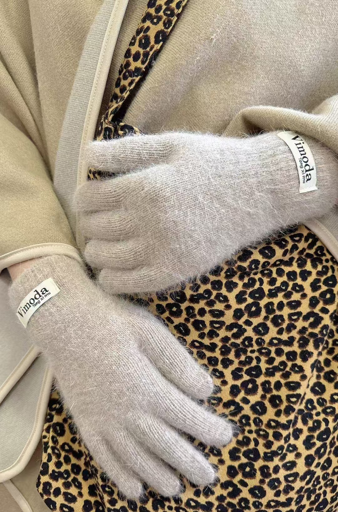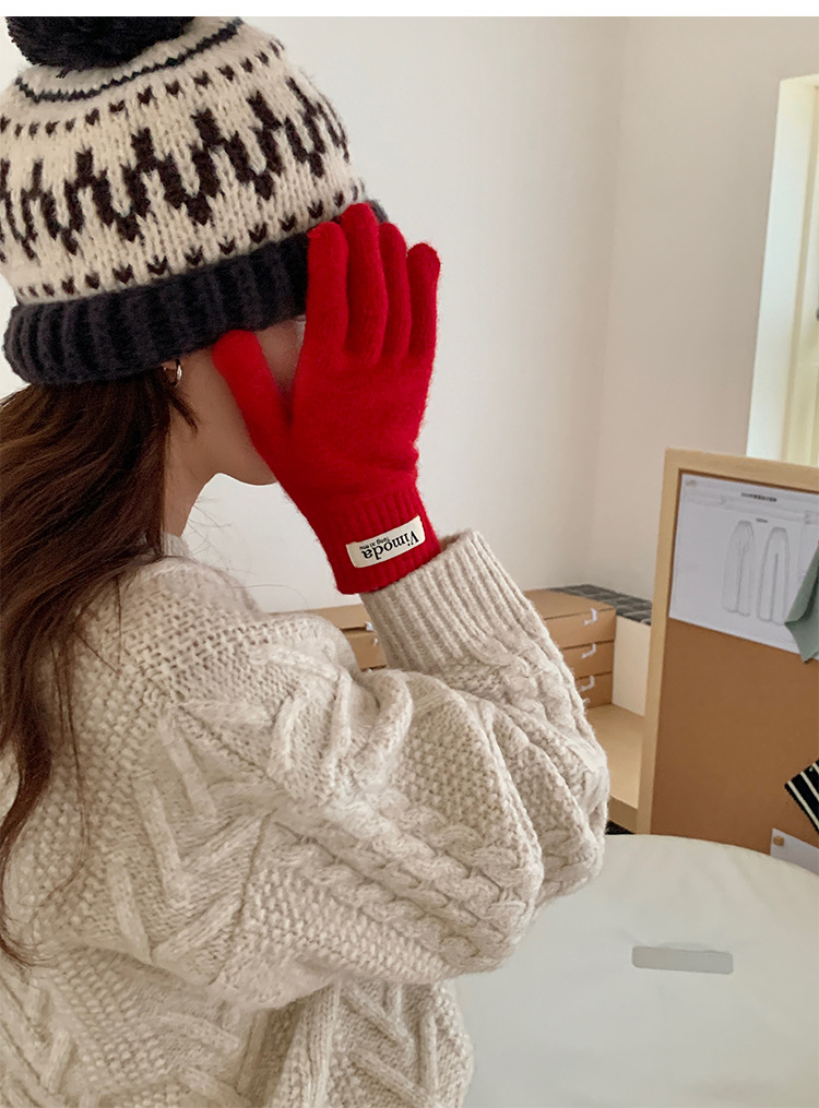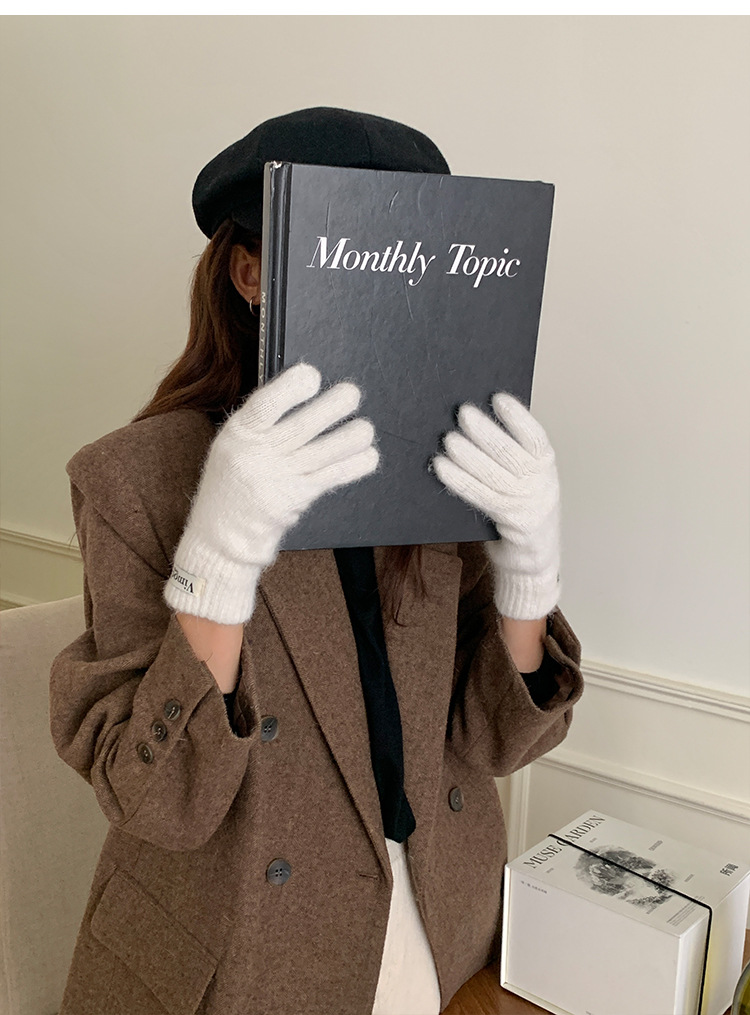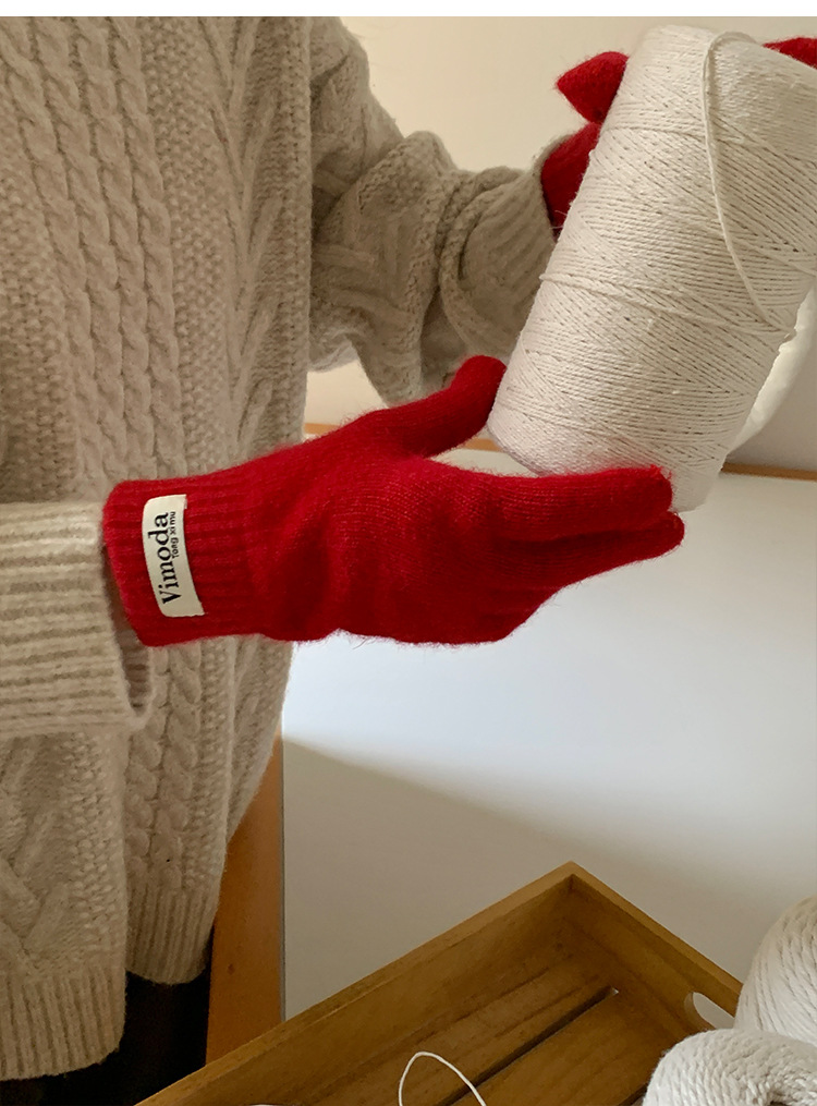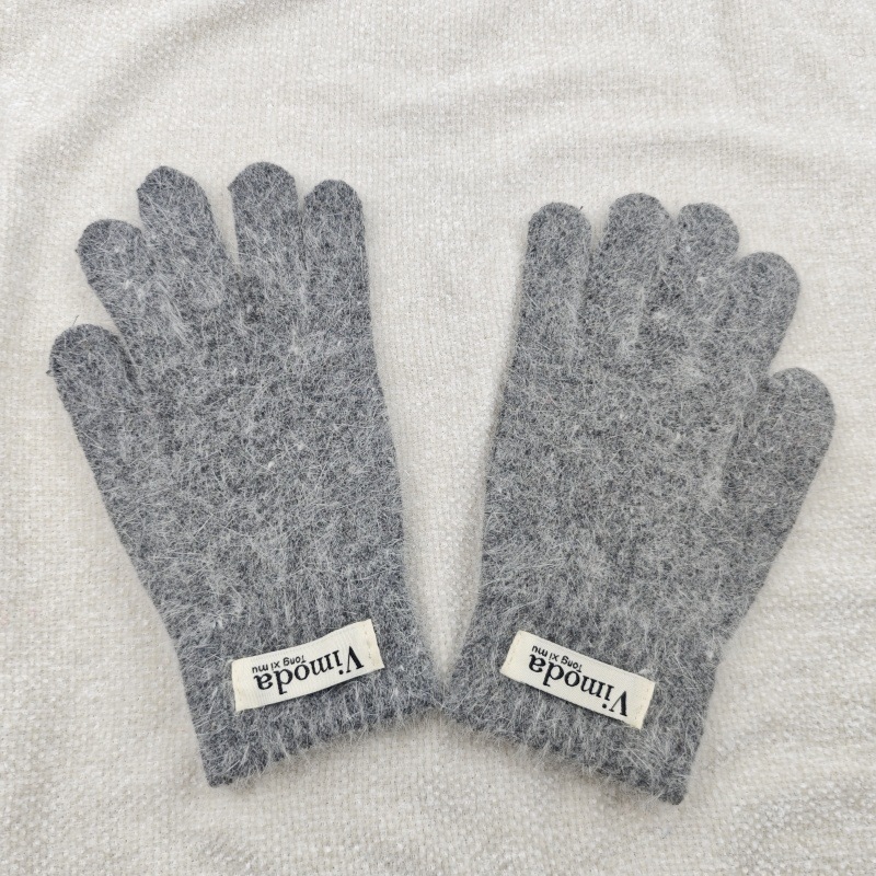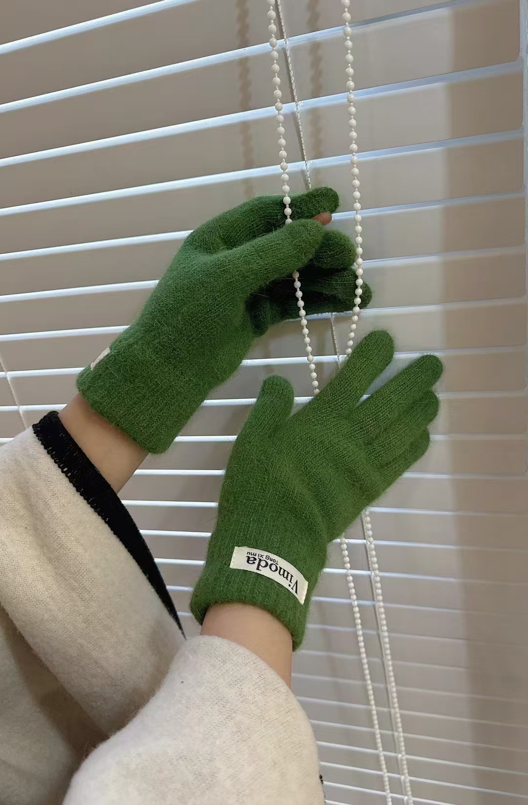겨울철 방한을 위한 여성용 한국식 니트 따뜻한 장갑에 벨벳과 두꺼운 토끼털 라벨을 더한 핑거리스 사이클링 및 터치스크린
