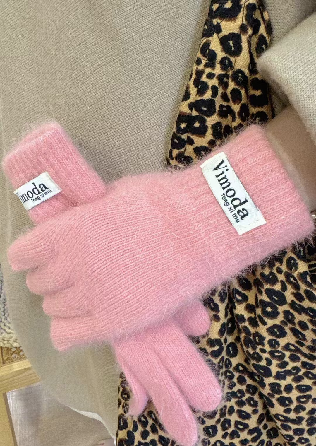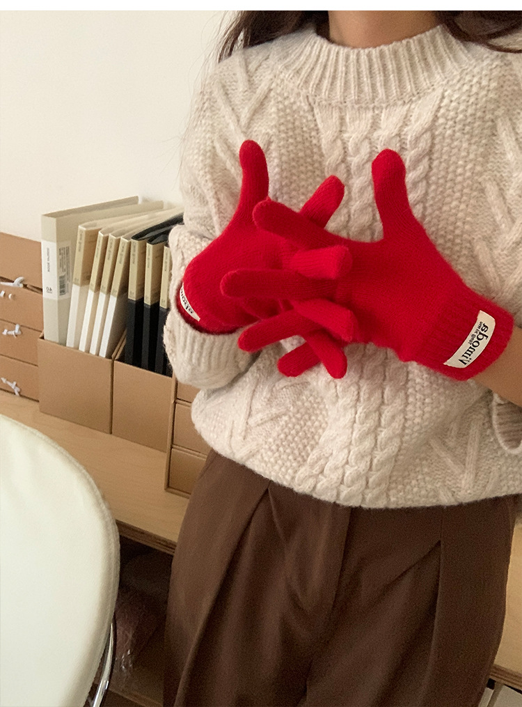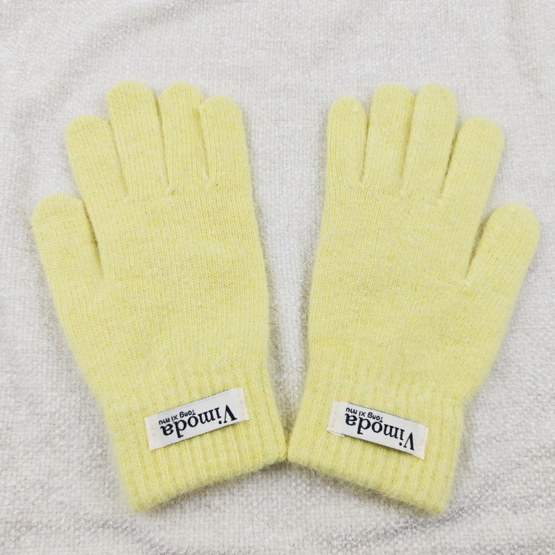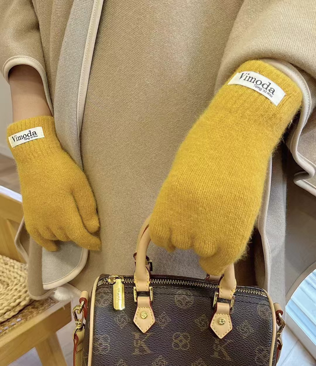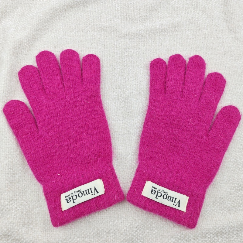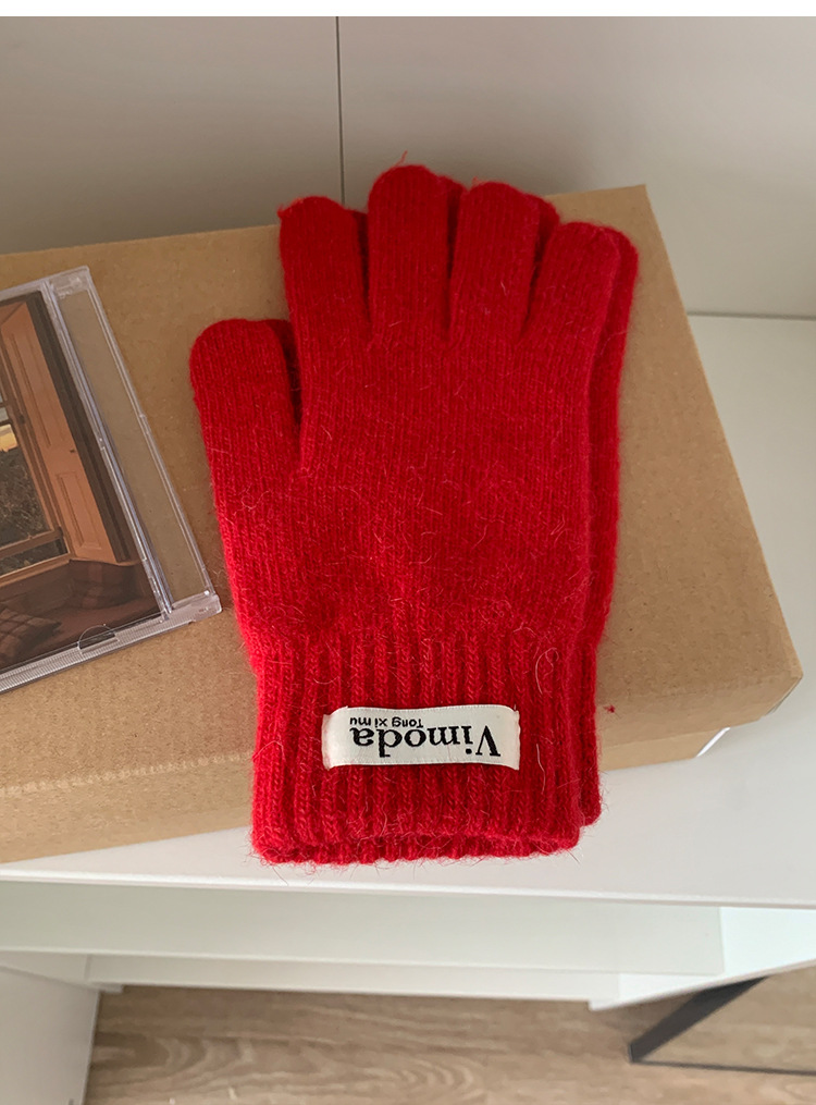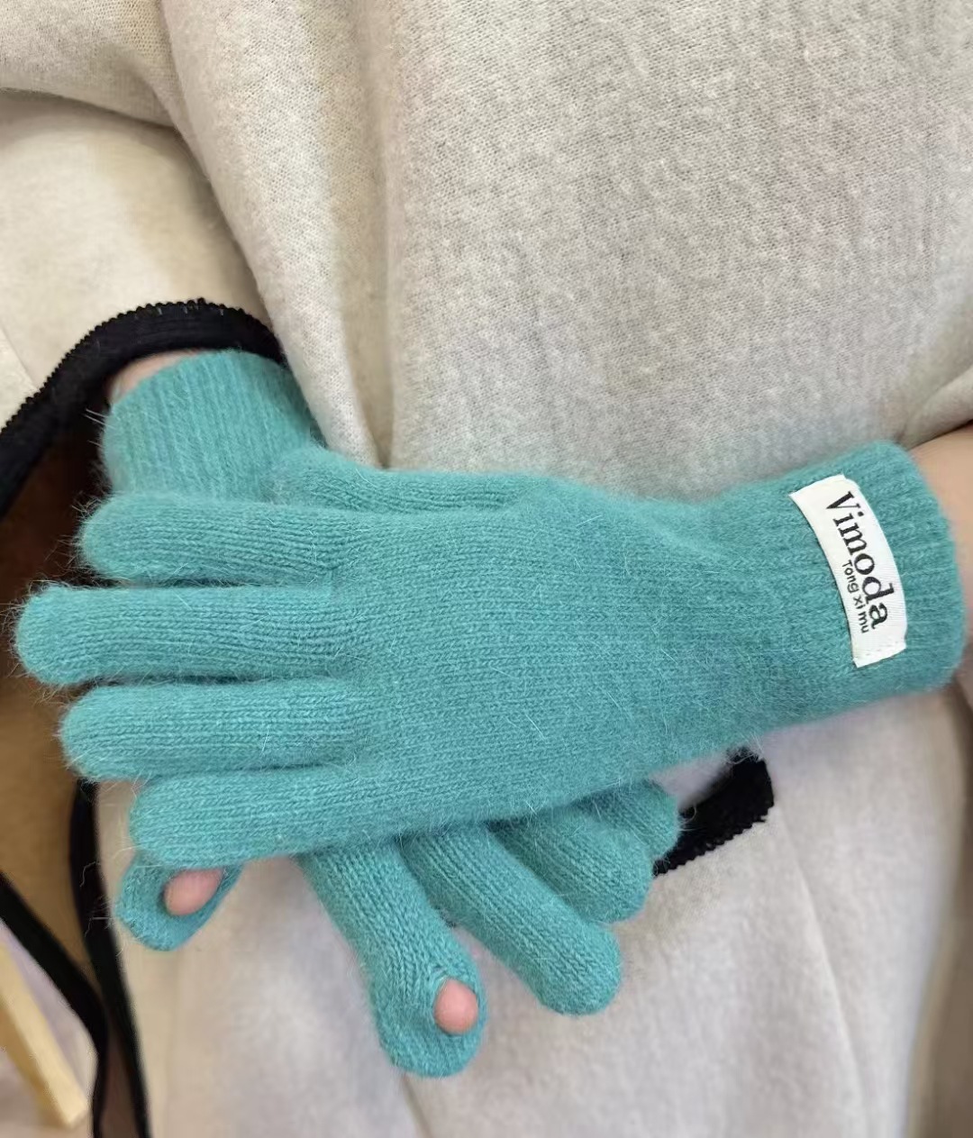 겨울철 방한을 위한 여성용 한국식 니트 따뜻한 장갑에 벨벳과 두꺼운 토끼털 라벨을 더한 핑거리스 사이클링 및 터치스크린