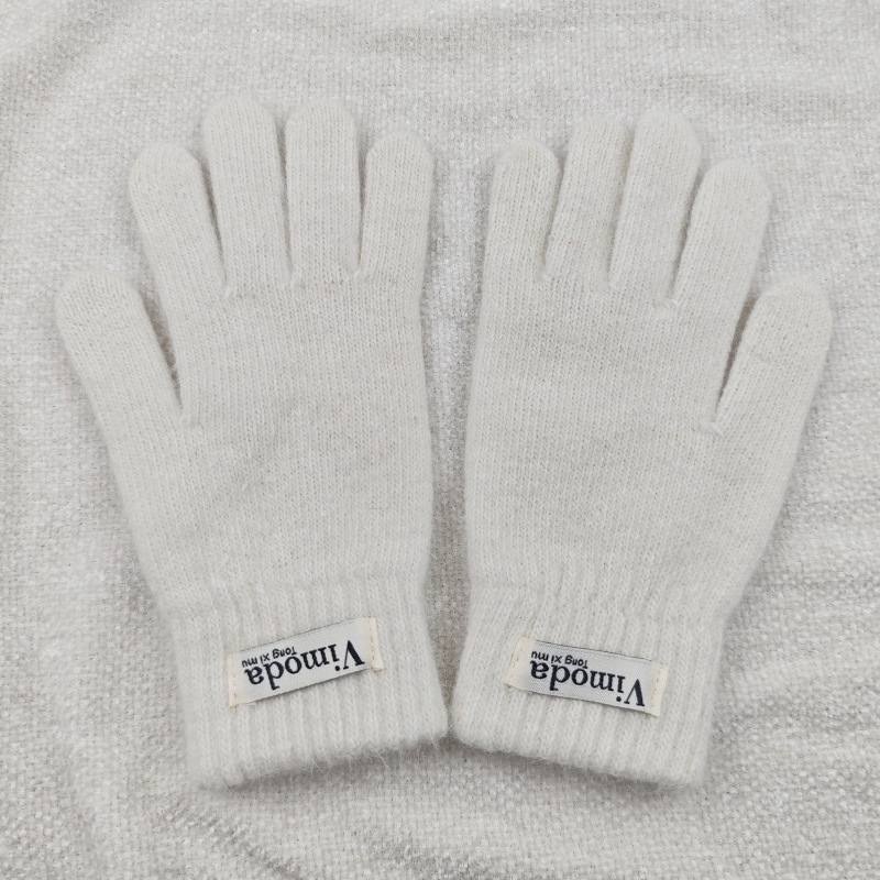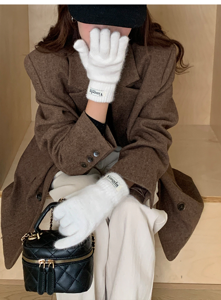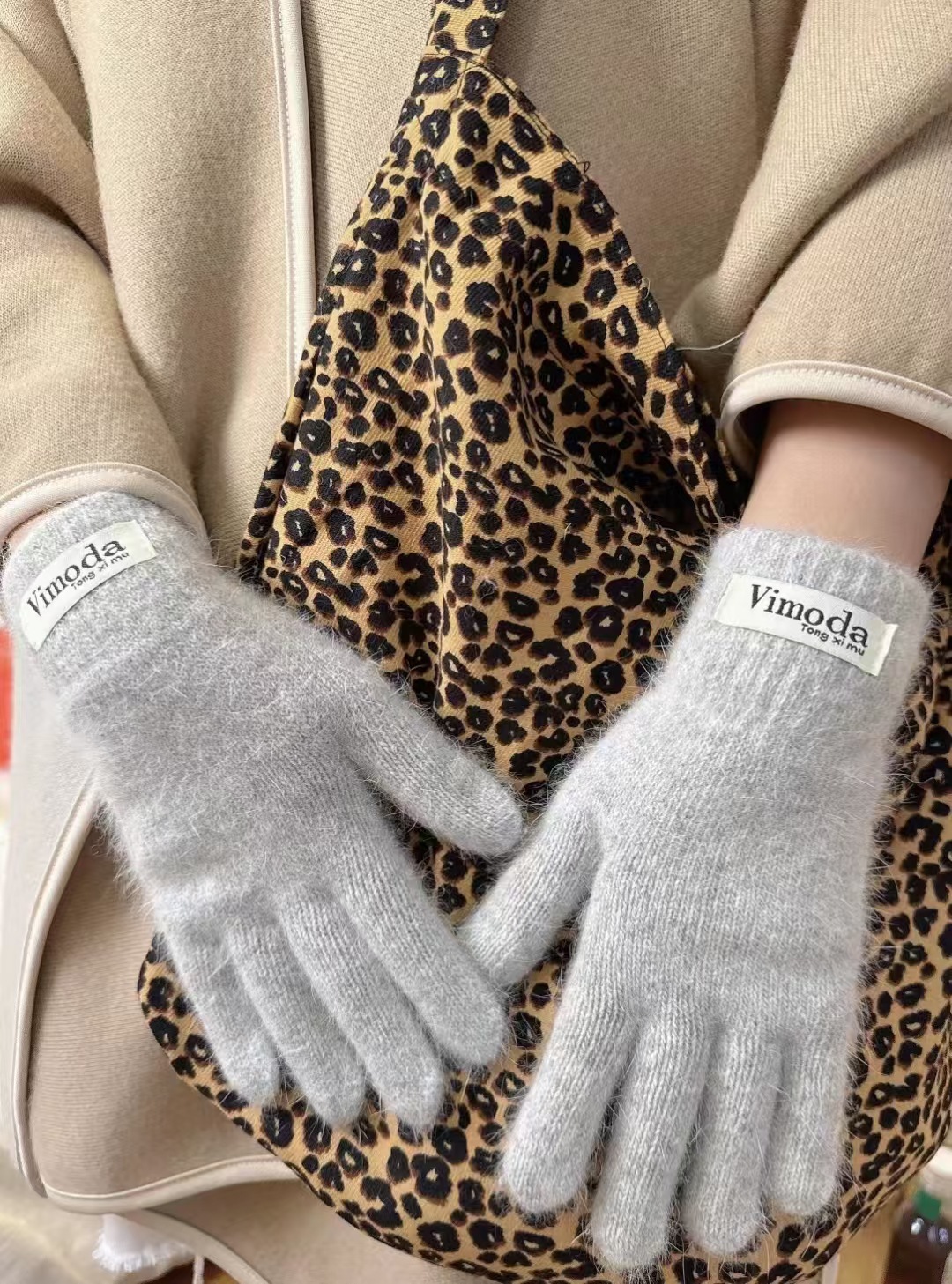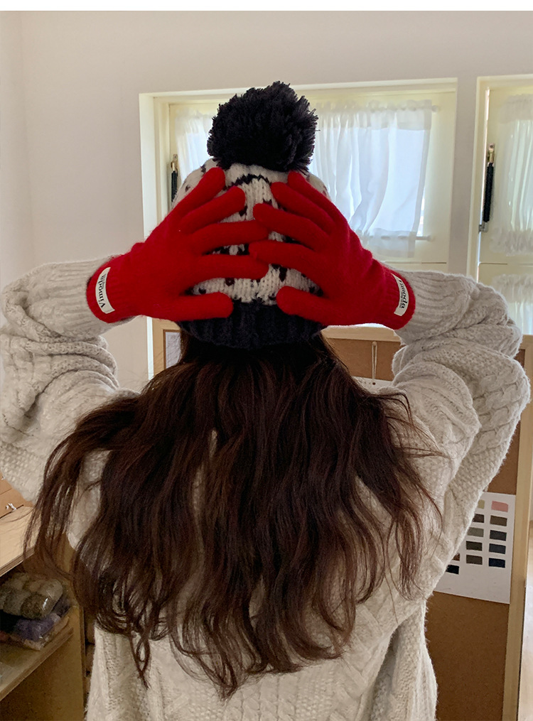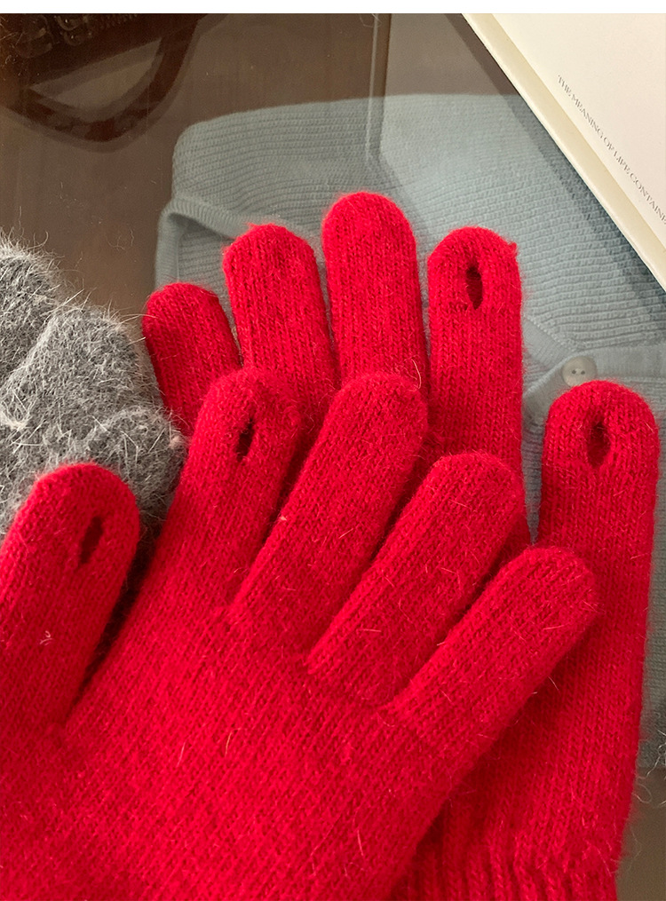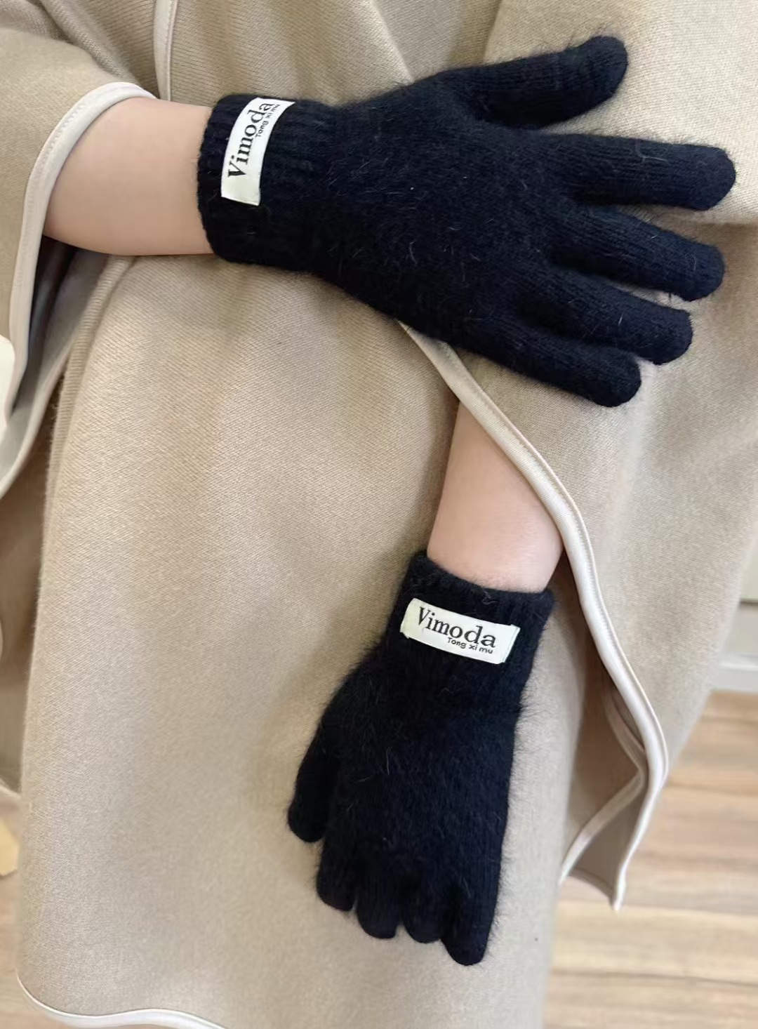 겨울철 방한을 위한 여성용 한국식 니트 따뜻한 장갑에 벨벳과 두꺼운 토끼털 라벨을 더한 핑거리스 사이클링 및 터치스크린