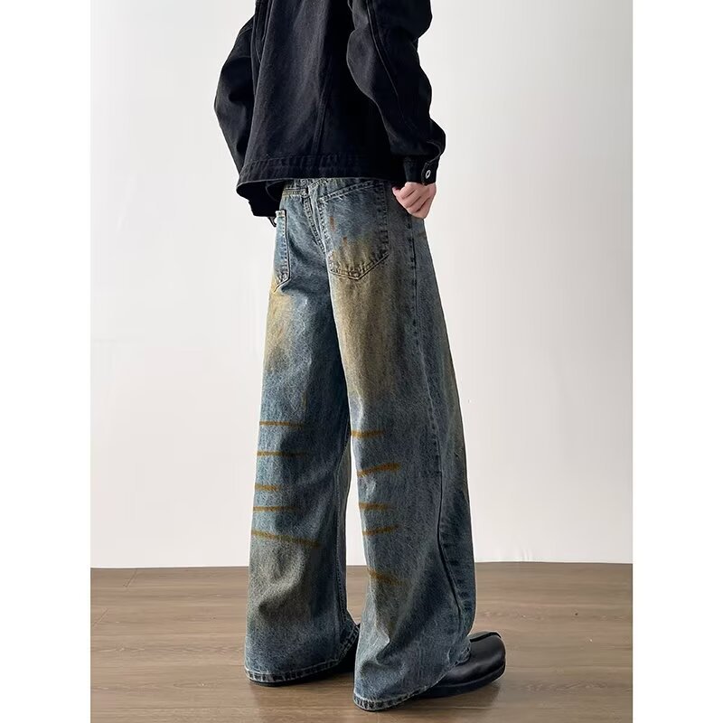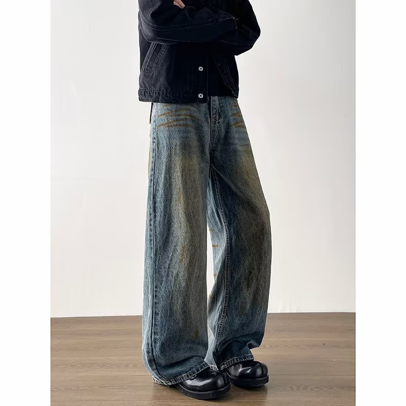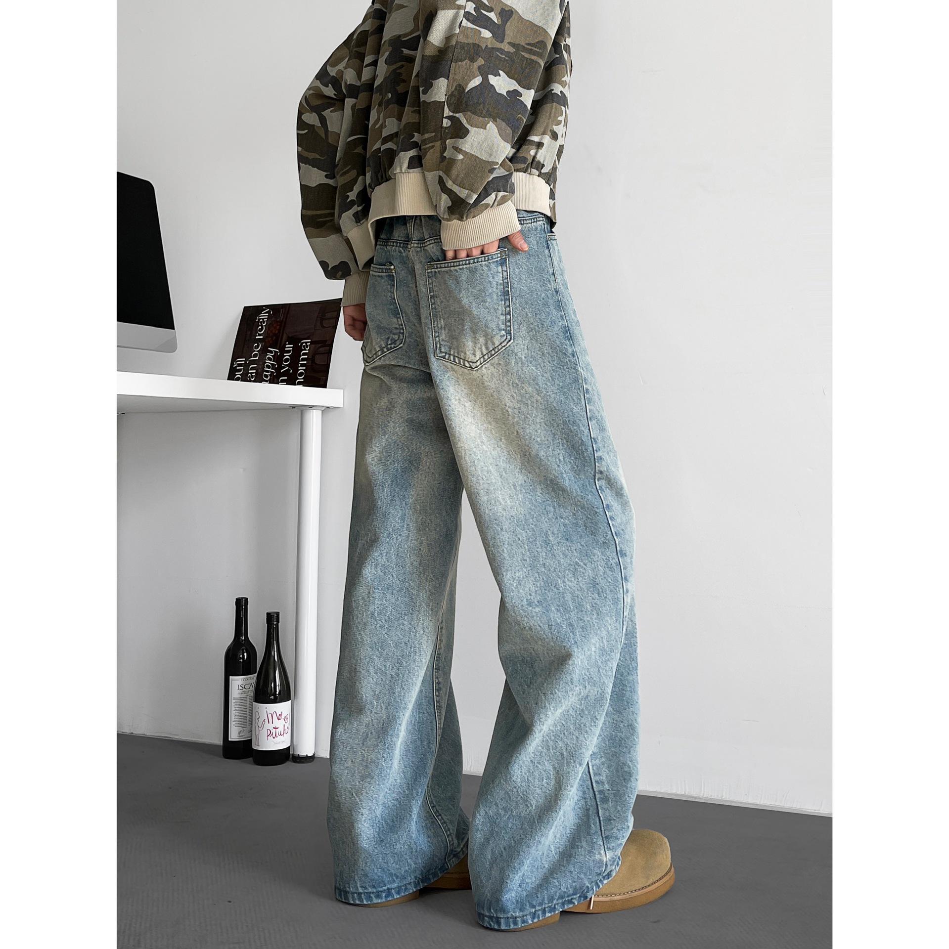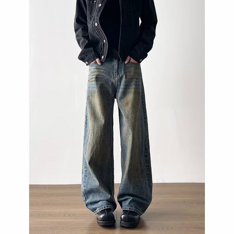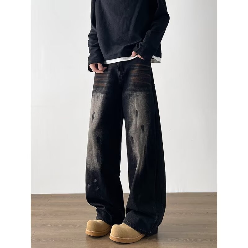 다섯개 별 청바지 남자 봄과 가을 미국 스타일 하이 스트리트 2025 새로운 유행 브랜드 스트레이트 튜브 느슨한 넓은 다리 트렌디 바지
