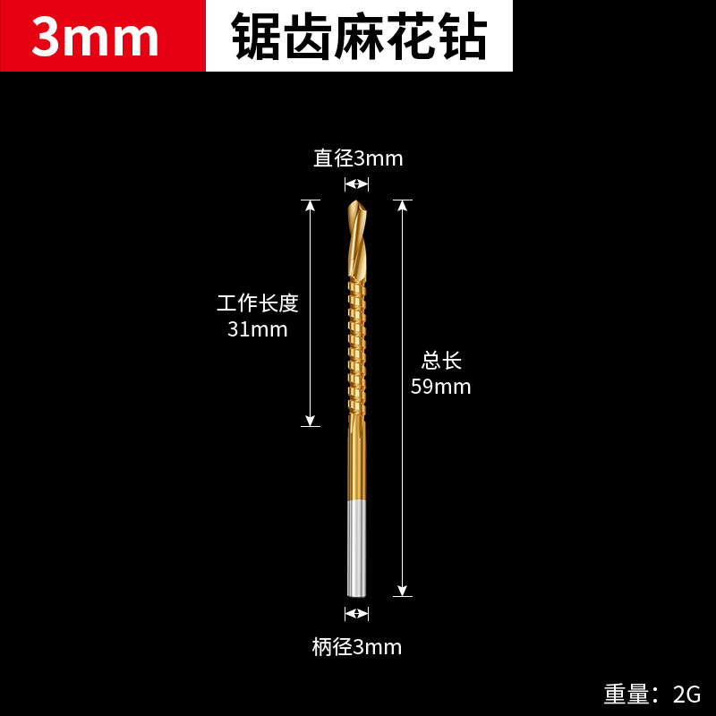 • 홈이 있는 톱니 모양의 드릴 비트 3mm