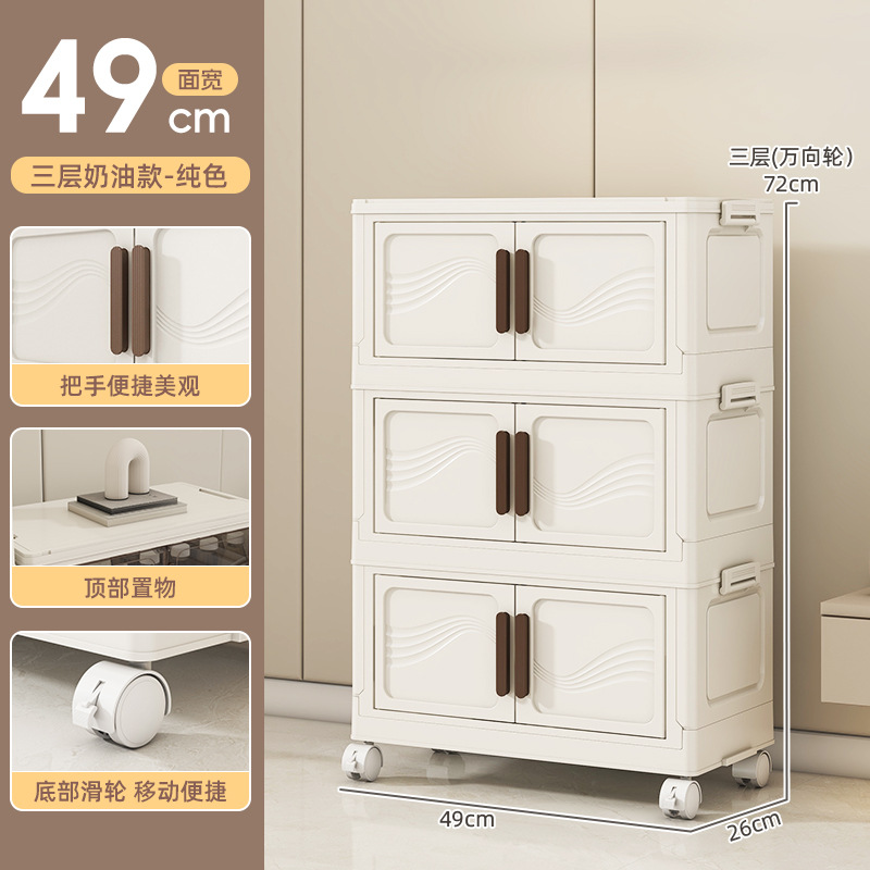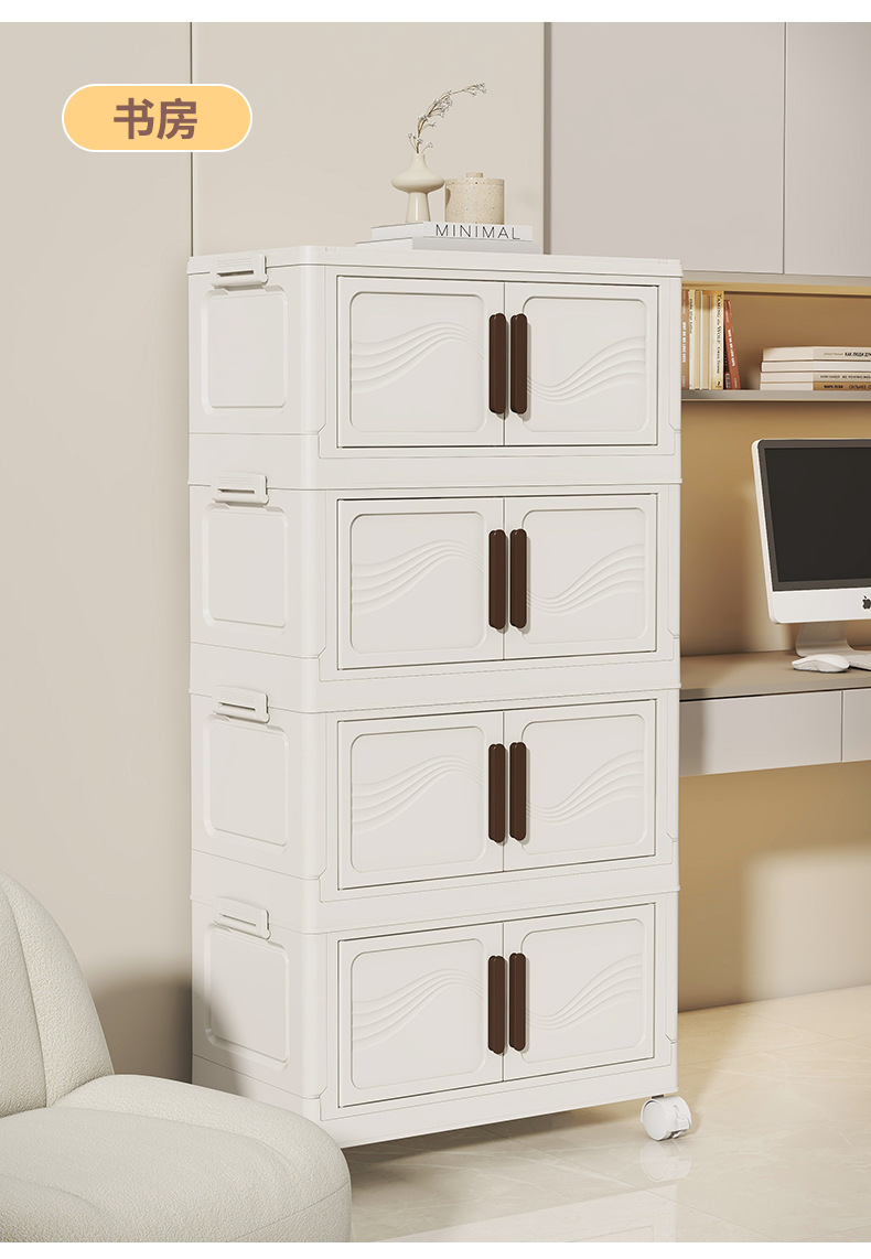 가정용 더블 도어 다층 플로어 스탠딩 스토리지 랙 어셈블리-무료 접이식 스토리지 캐비닛 거실 스낵 장난감 스토리지 박스