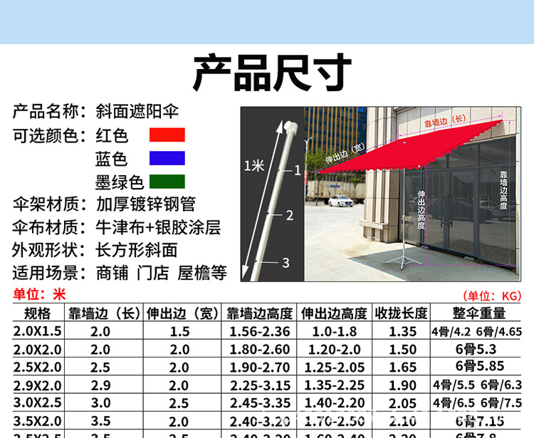 • 경사우산 3X 2.5m 두껍고 두꺼워진 6갈비