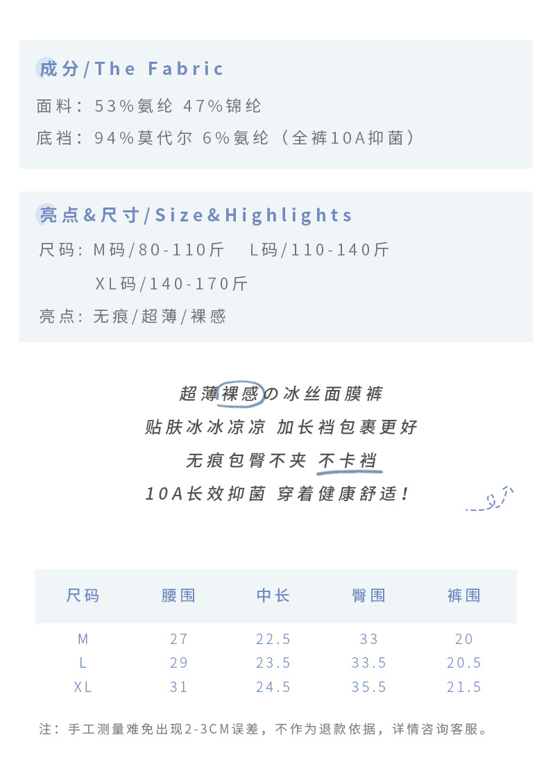 82058 # 페이셜 마스크 바지 원활한 초박형 얼음 실크 속옷 여성 모달 확장 전체 바지 10A 항균 팬티