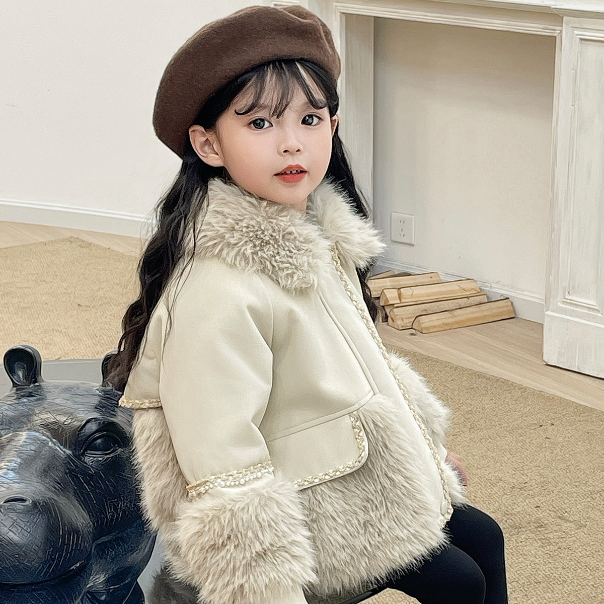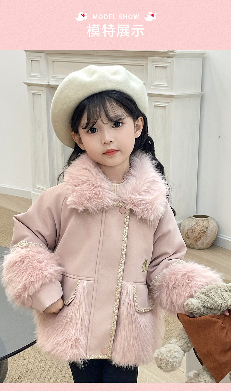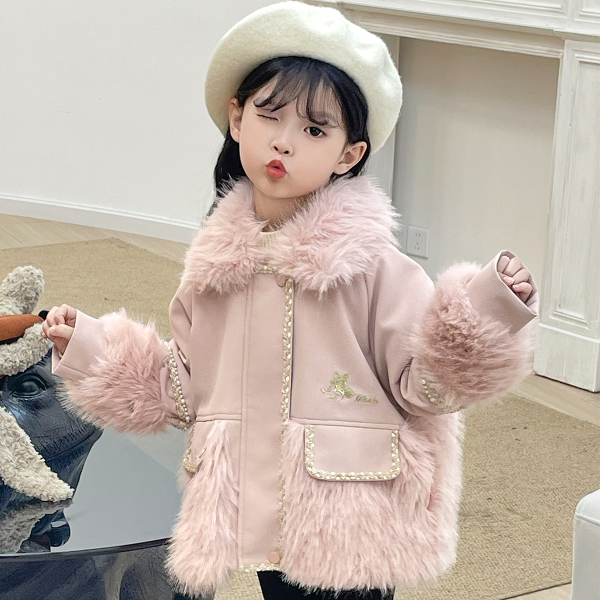 미니 소녀 가을과 겨울 모조 모피 코트 2024 새로운 겨울 어린이 어린 소녀 아기 면화스토어 가기