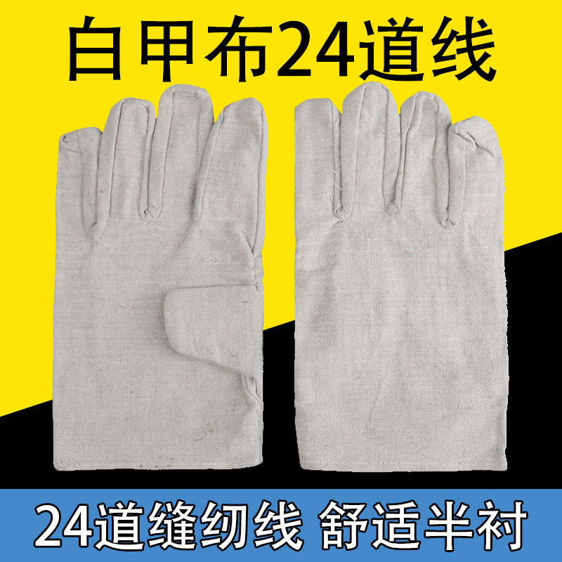 캔버스 장갑 더블 레이어 24 와이어 전체 안감 두꺼운 용접 장갑 사이트 보호 노동 보호 장갑 용접기 흰색 노란색 갑옷스토어 가기